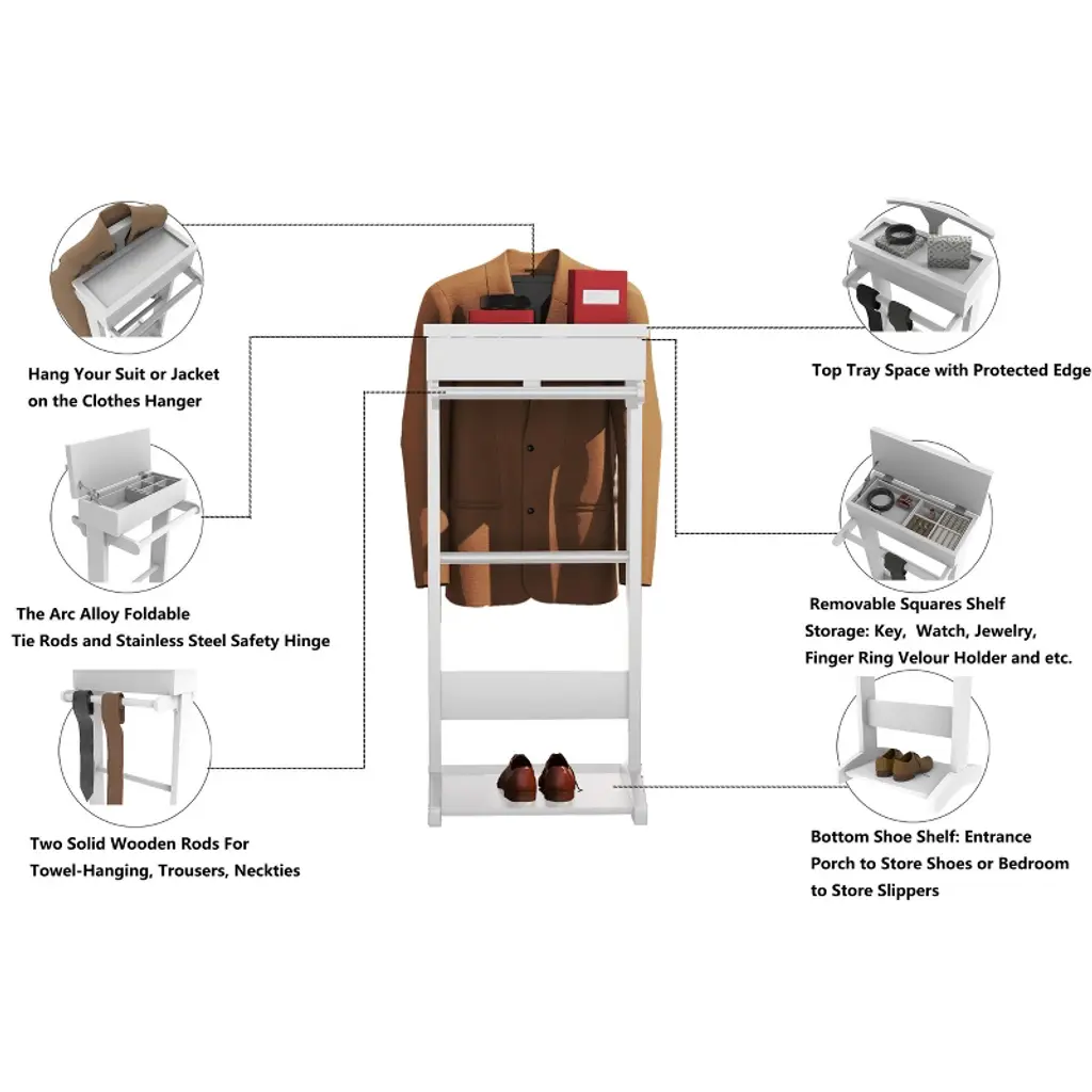 Top shelves Maximize the space in a small bedroom, bedroom wardrobe or closet to accommodate clothes, bags, plants. Stronger installation More care for your walls. Make the rack more stable and securely fixed to the wall. Every Joint Is A Strong Alloy Not a whole, but better than a whole Product Information Product Type Clothes Rack Color Black Material Particleboard, Steel Exterior Measurements 118.3" Lx 15.7" W x 90.55" H Interior Measurements 3 spaces of 39.37" Lx 15.7" W Max. Static Load Capacity of top shelves 45lbs * 3 Max. Static Load Capacity of hanging rods 100lbs * 6 Assembly Requried About 15 min Packages number 1 Package Contents 1 x Clothes Rack, 1 x Assembly Kit, 1 x Instructions