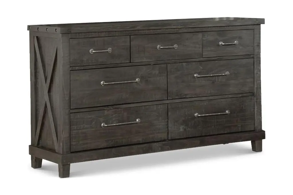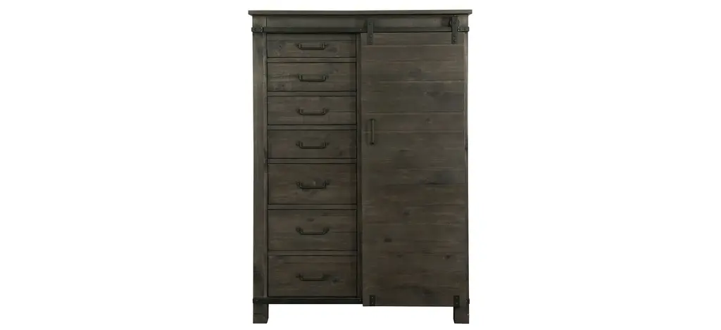 The Jaxon Grey II 6-Drawer 1-Door Wood Bedroom Wardrobe Closet offers a perfect blend of industrial style and functionality. Crafted from solid pine, this wardrobe features an aged grey finish that adds a rustic charm to any bedroom. With ample storage space, including six drawers and adjustable shelves, it ensures all your clothing and accessories are neatly organized.