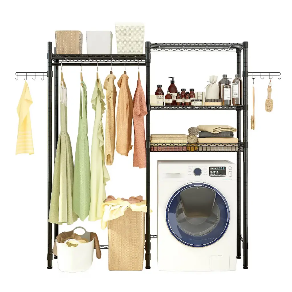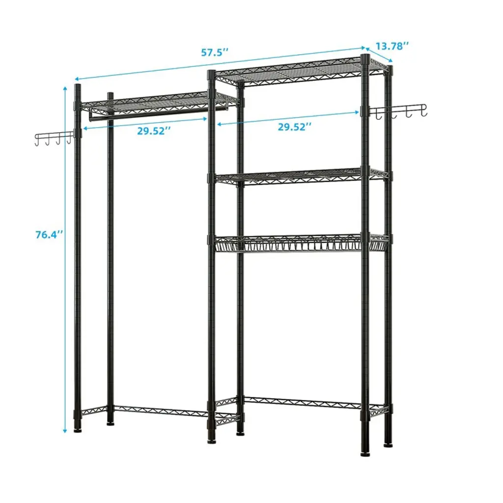 Karl Home Black Iron Open Wardrobe With Double Rows Rails & Mesh Baskets 57.1x13.8x76.8 Inches