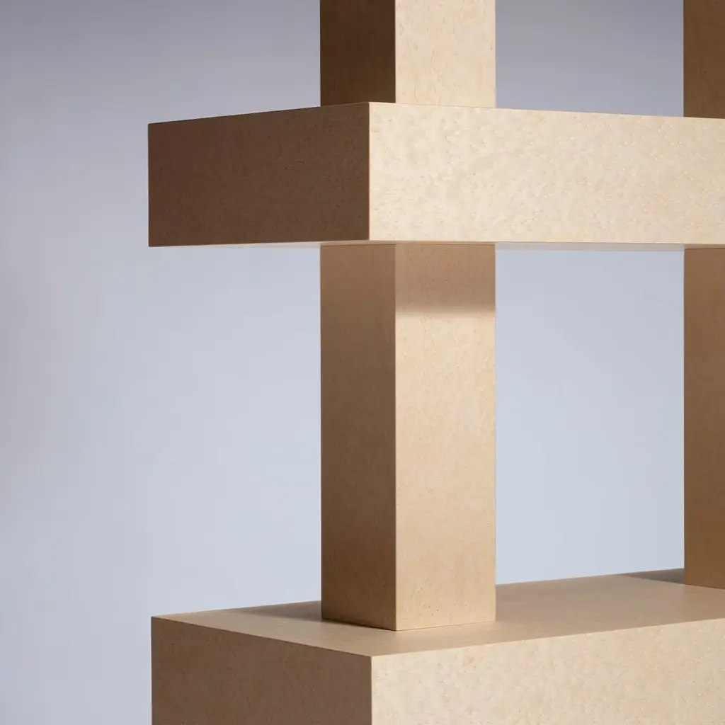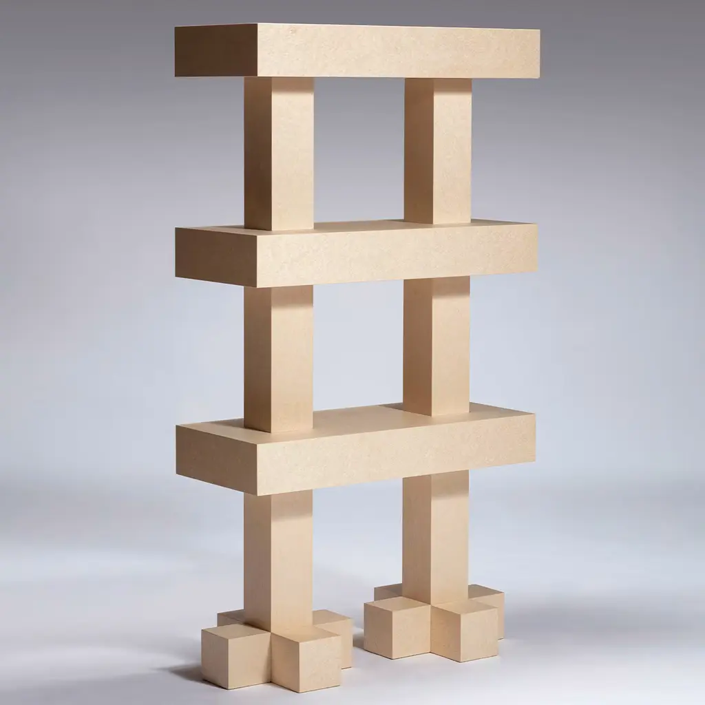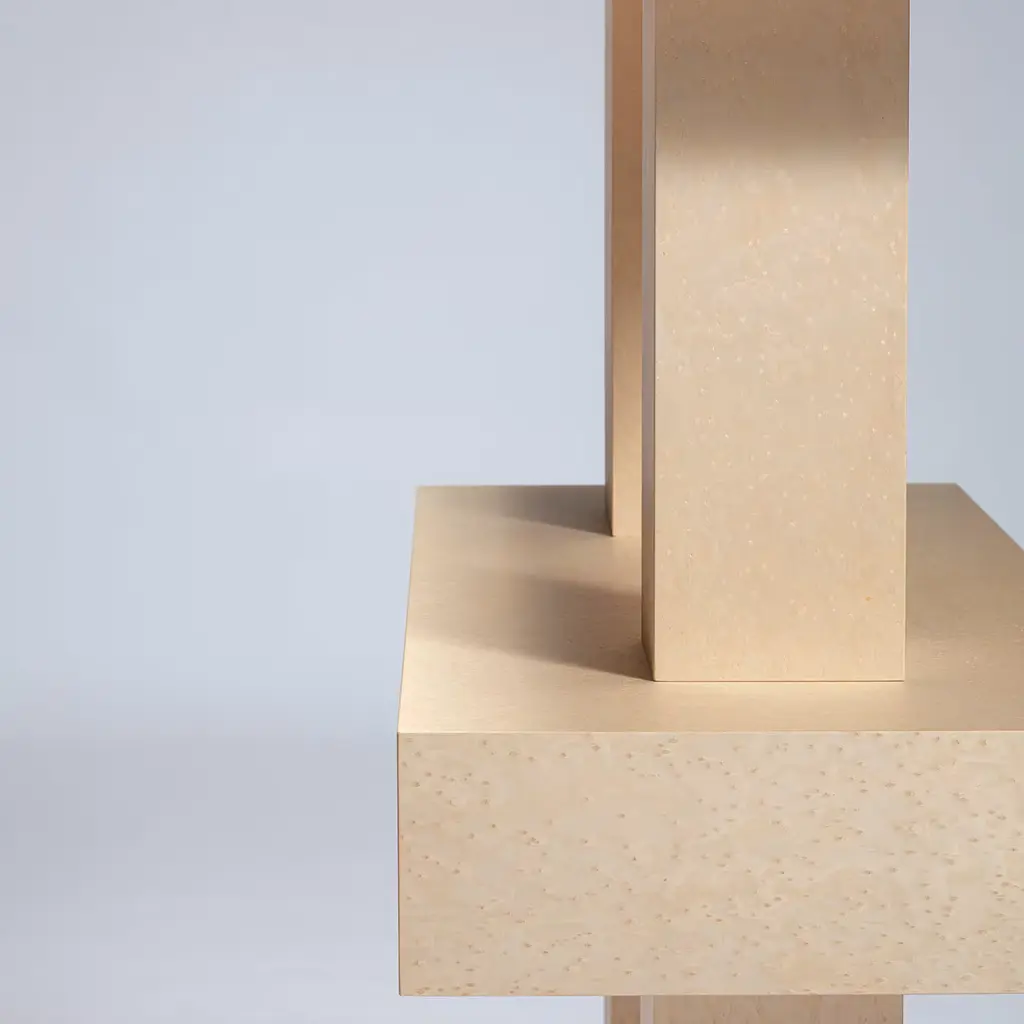 Mobili Sintetici celebrates the basics of carpentry: straight and inclined square cuts, veneering, surface, and edge finishing. The objects of the Sintetici collection, allude to robotic or mechanical imagery with vaguely anthropomorphic features and do not seem to come from a traditional production but rather the result of an experimental process of synthesis. Materials: pre-composite veneered plywood. Please ask the Concierge for further information and options.