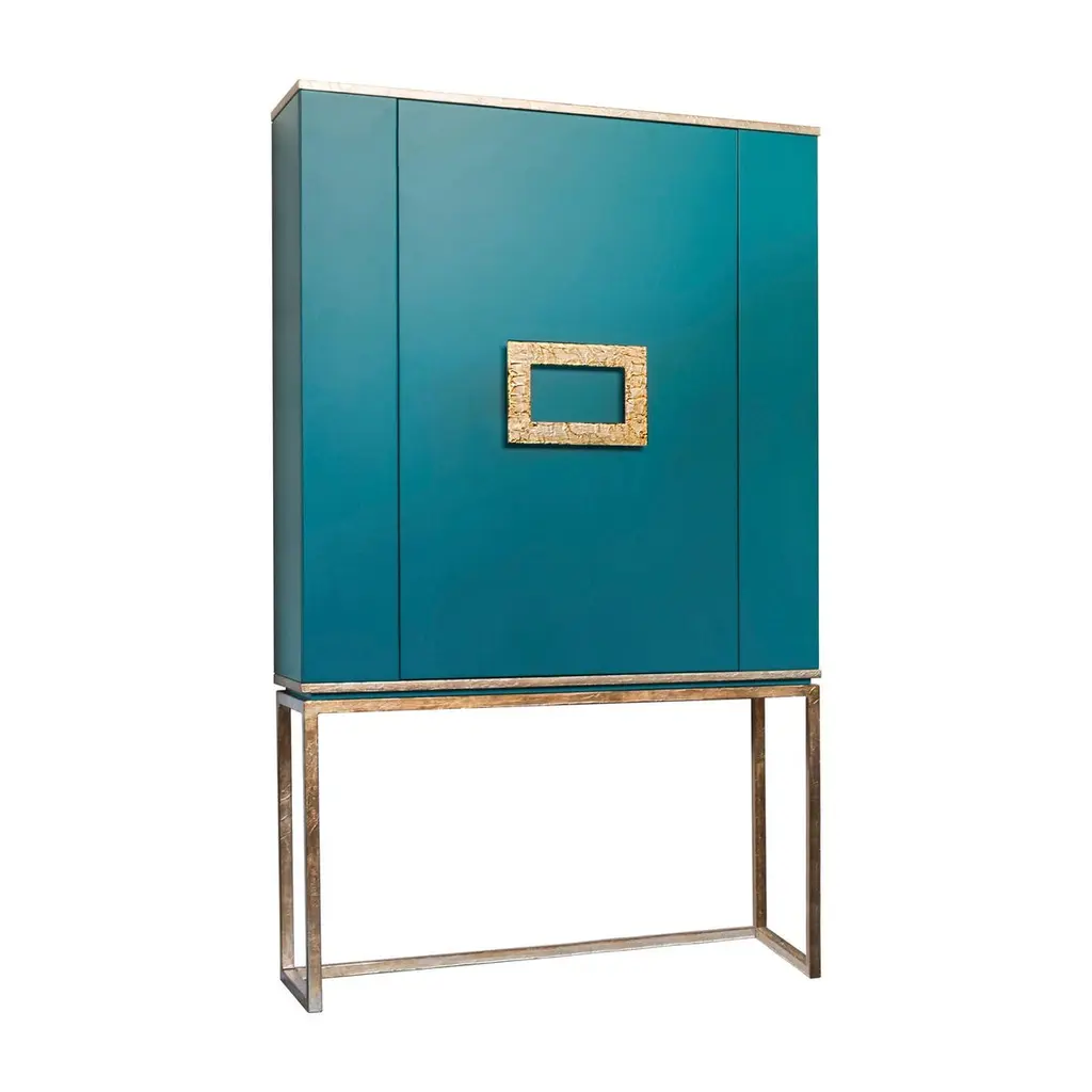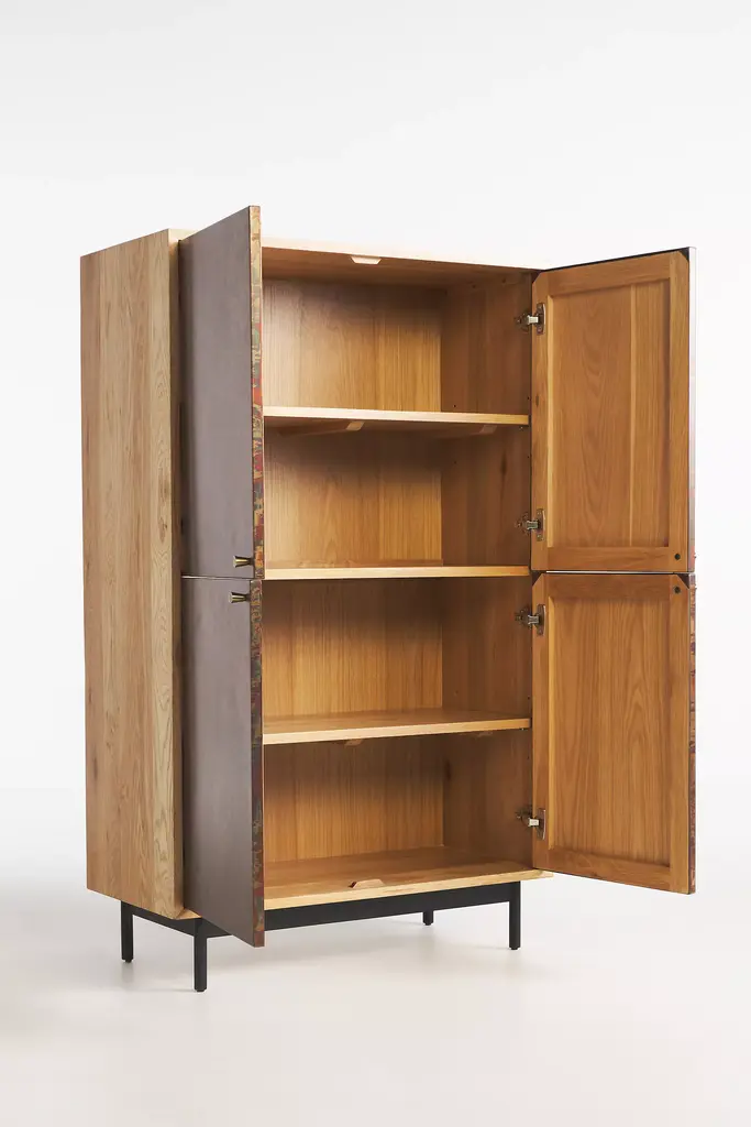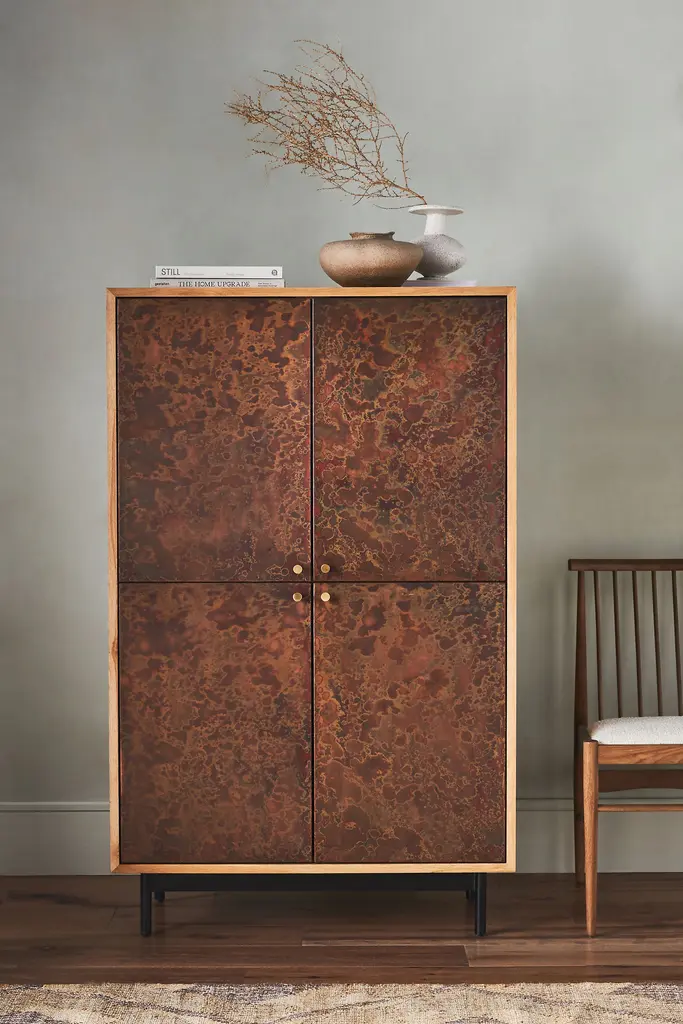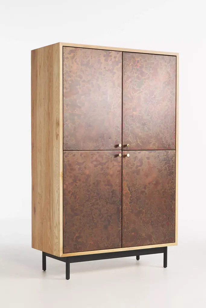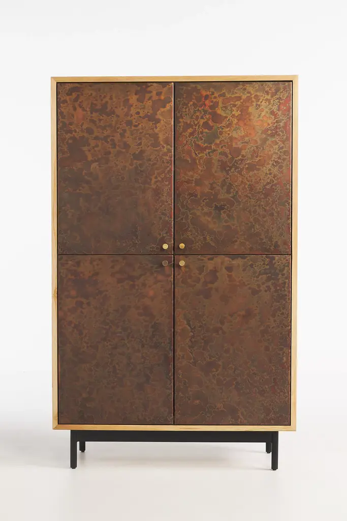 Steel doors with a reactive finish create a dynamic focal point on this stately armoire, which features ample storage for an opulent bedroom or living space.For ordering assistance and more, please contact us. For aesthetic advice and tips to help decorate your space, enjoy our complimentary home styling services.