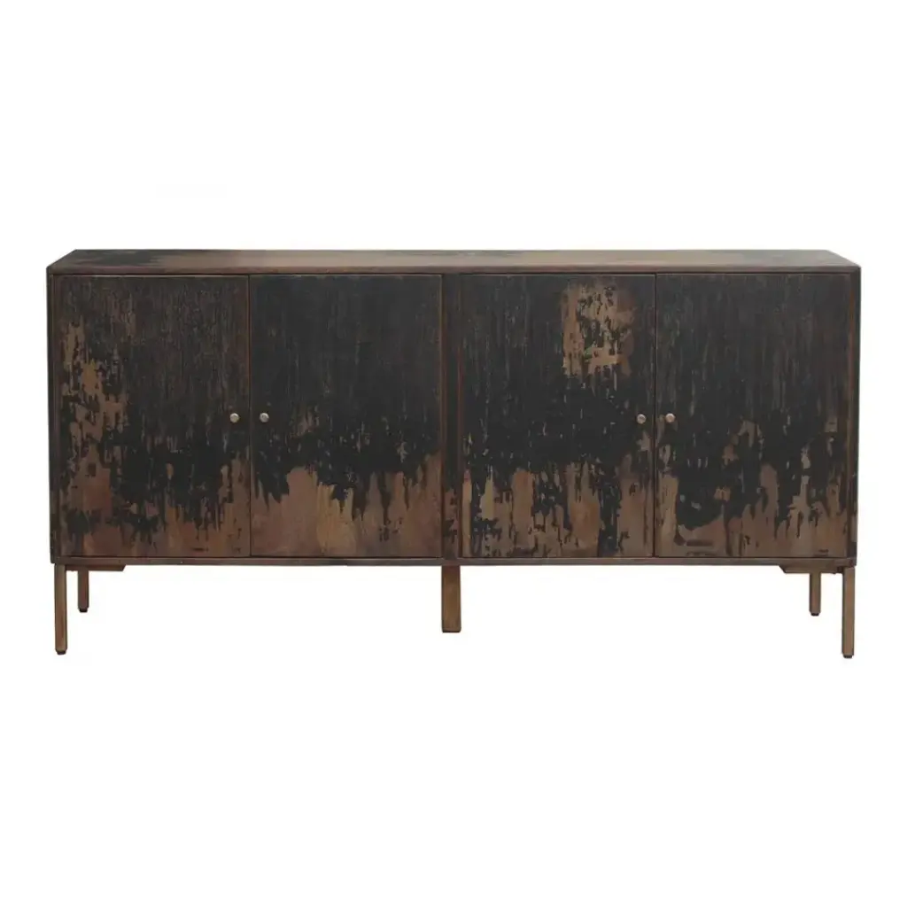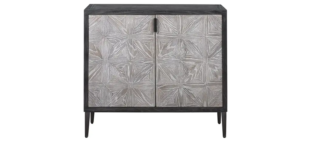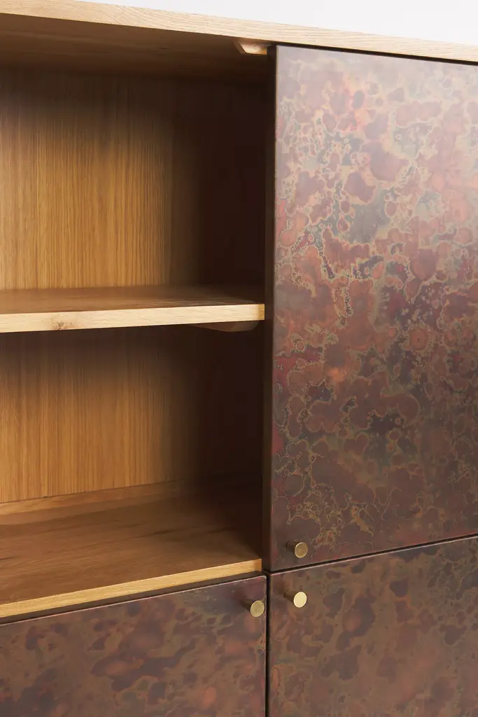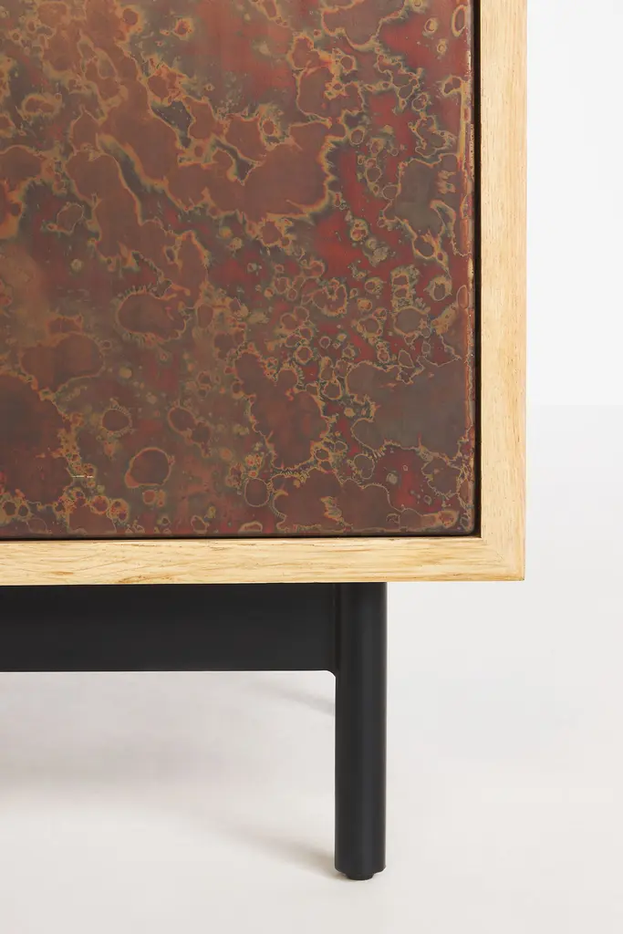 Steel doors with a reactive finish create a dynamic focal point on this stately armoire, which features ample storage for an opulent bedroom or living space.For ordering assistance and more, please contact us. For aesthetic advice and tips to help decorate your space, enjoy our complimentary home styling services.