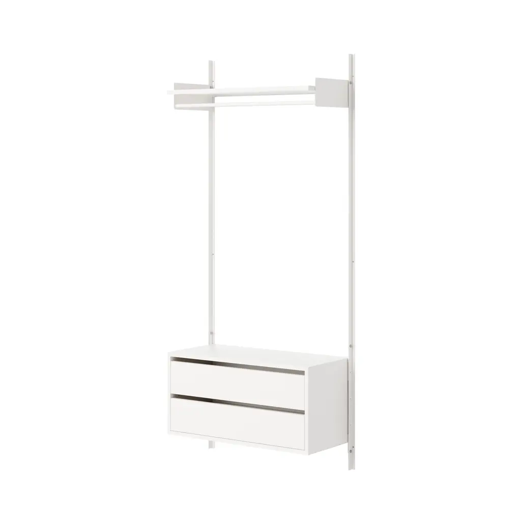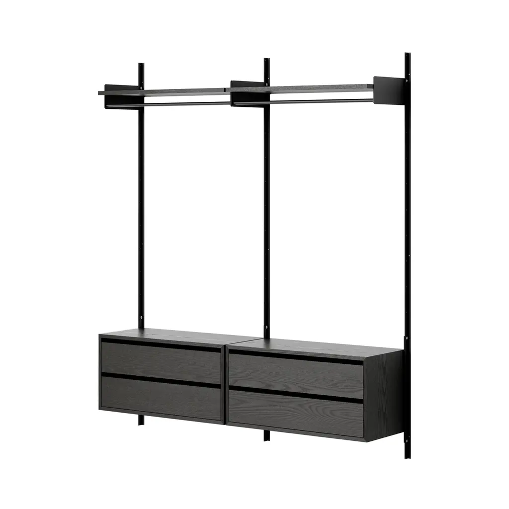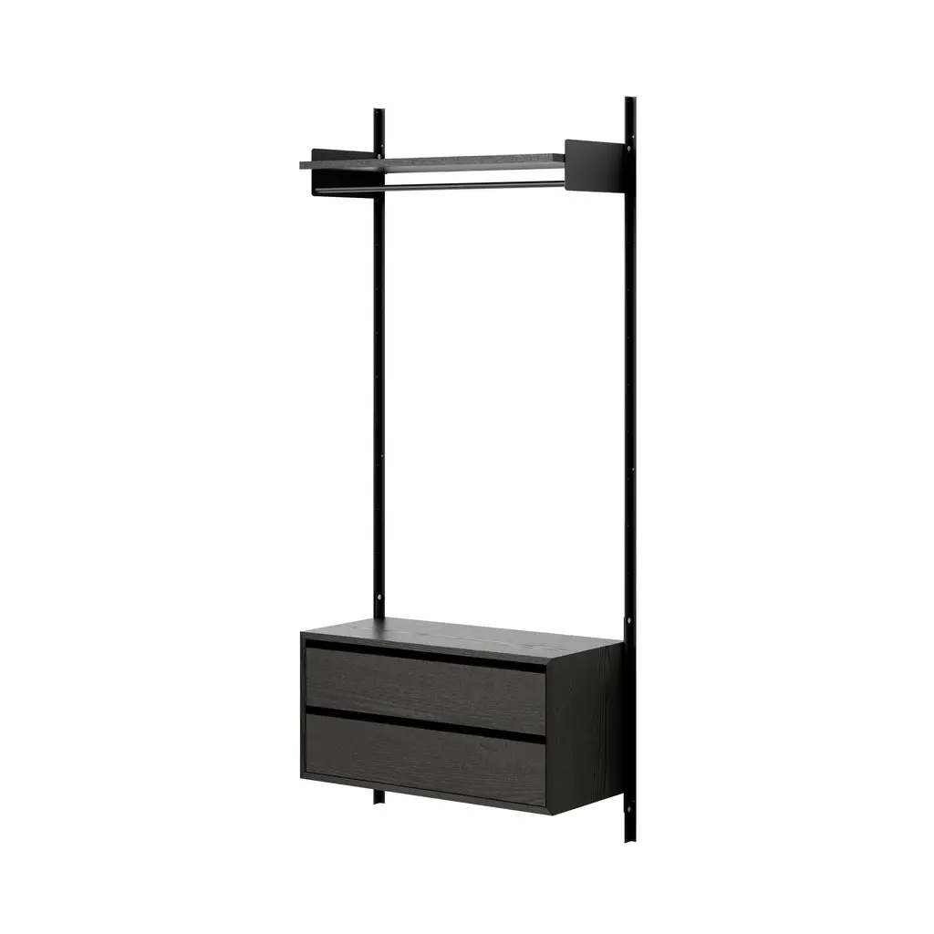 The New Works Wardrobe Shelf Cabinet with Drawers is designed for seamless integration with existing shelving systems or as a standalone unit. Featuring minimalist handles, the cabinet is available in finishes such as black, white, oak, black-stained ash, and walnut. With both doors and drawers, it provides a refined look while efficiently hiding away essentials, making it a versatile piece for any interior.
