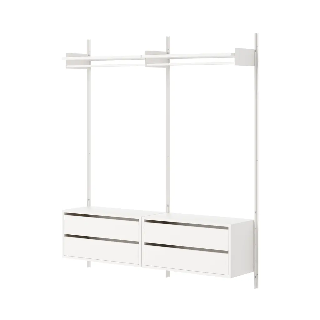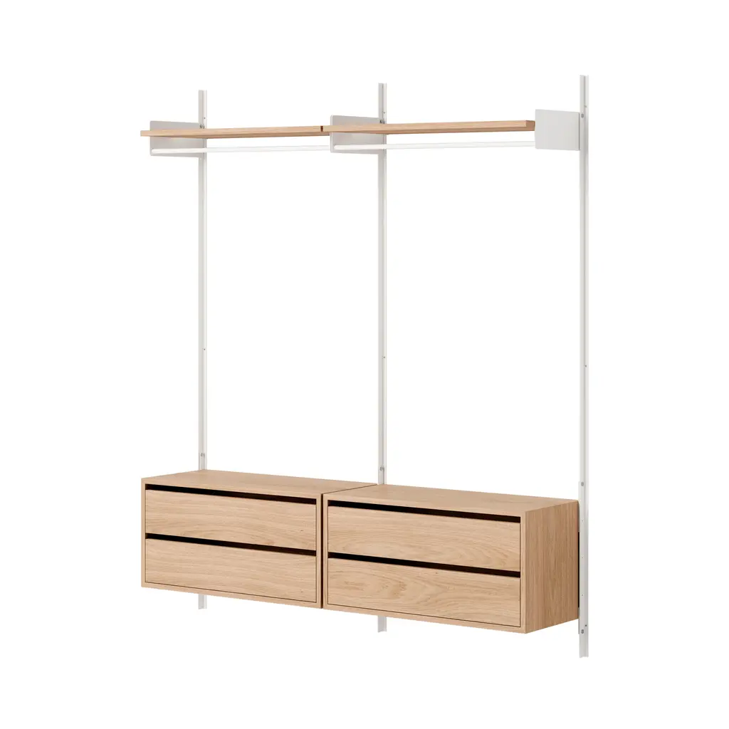 The New Works Wardrobe Shelf Cabinet with Drawers is designed for seamless integration with existing shelving systems or as a standalone unit. Featuring minimalist handles, the cabinet is available in finishes such as black, white, oak, black-stained ash, and walnut. With both doors and drawers, it provides a refined look while efficiently hiding away essentials, making it a versatile piece for any interior.