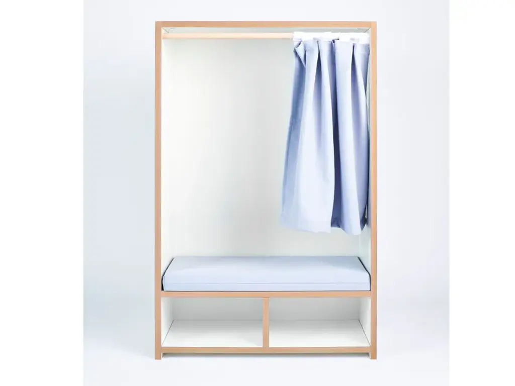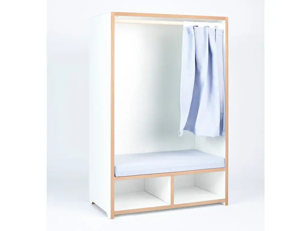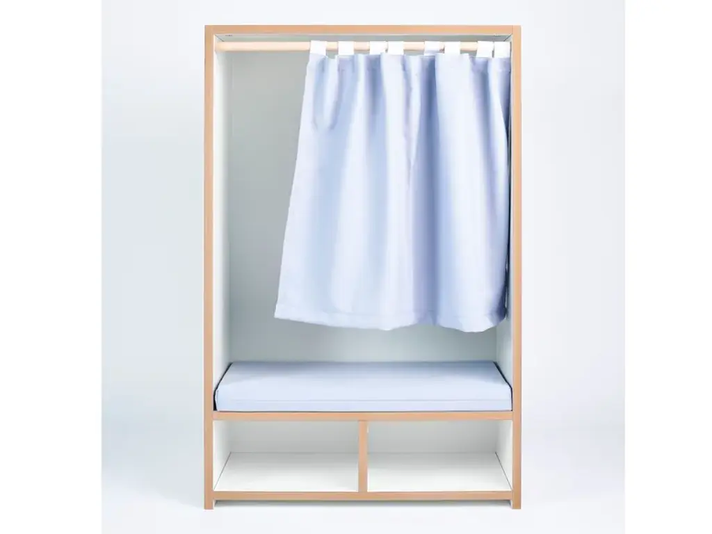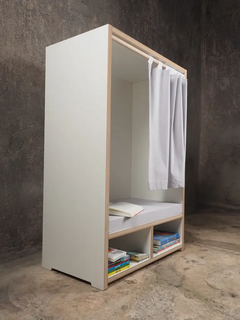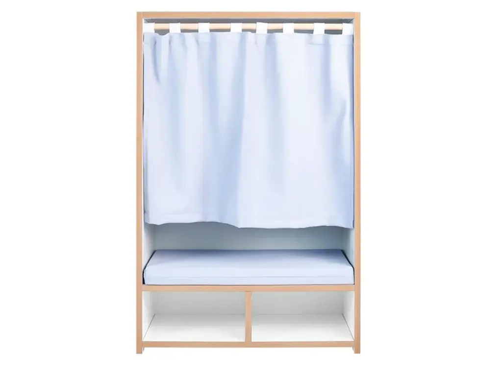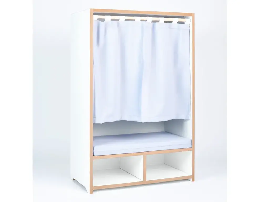 The Tojo-nische is a retreat for kids - whether for reading, sitting, resting or sulking. It sits comfortably on the included cushion. The side walls invite to lean and under the bench are two compartments for books, games or other utensils. In case the kids want to have their rest, the curtain can be drawn. Load capacity up to 50kg.