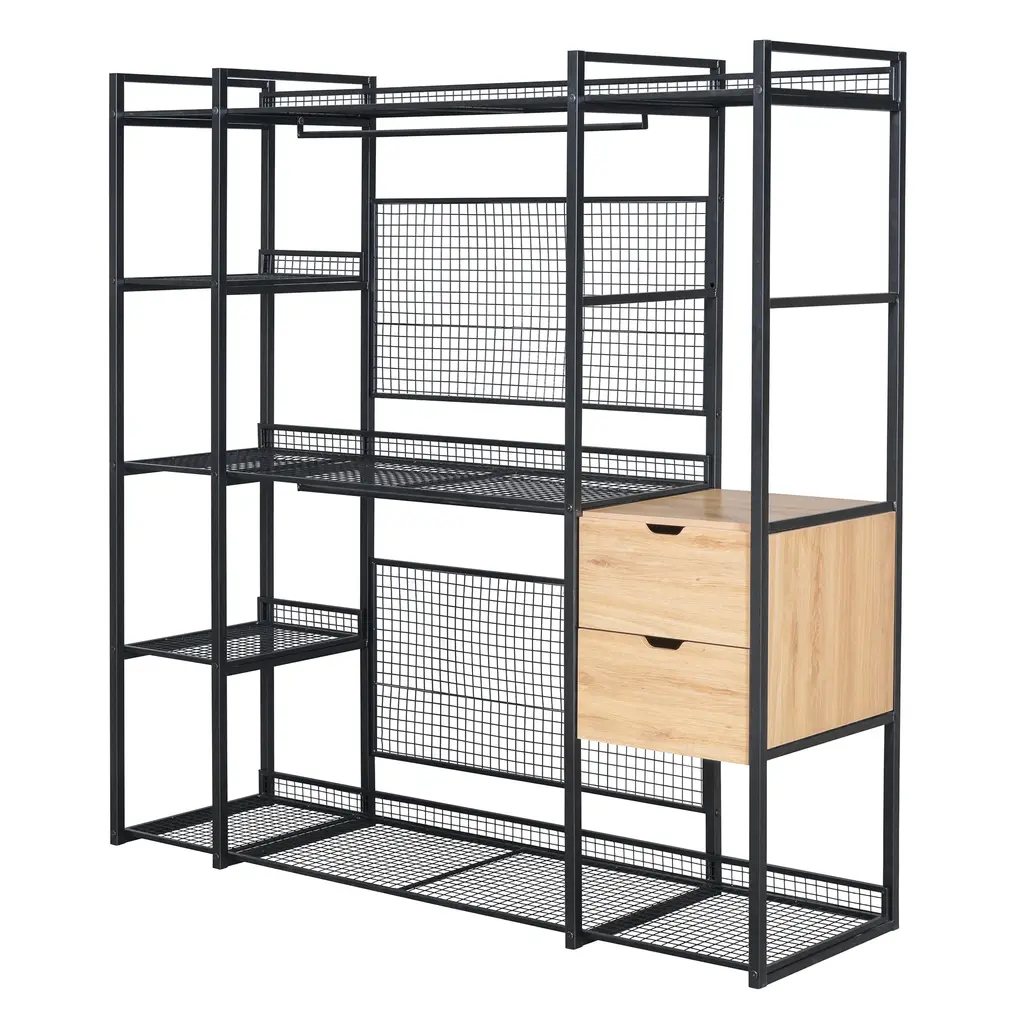 [Modern Clean design] Eliminating excess mess gives you more physical and mental space to dream up a room that's uniquely your own.This wardrobe features a clean, strong silhouette that can anchor a room with ease. White/Black will match most modern room decor themes according to most interior designers. [Maximized space] The wardrobe maximize your closet space with this open-style clothing rack. The hanging rails and metal shelves provide ample room for clothes and accessories. [Secure Storage] Equipped with two drawers, the wardrobe helps to store books, decorations, or to place some important things. [A Beautiful Piece for Bedroom]Crafted of metal in a clean painted finish, this wardrobe strikes a clean-lined silhouette that blends well with the surroundings. Our designs promote both comfort and elegance. [Dimensions] Overall Product Dimension: 68.5"L x 20"W x 70"H. Some assembly is required, although we have provided clear instructions and tools.