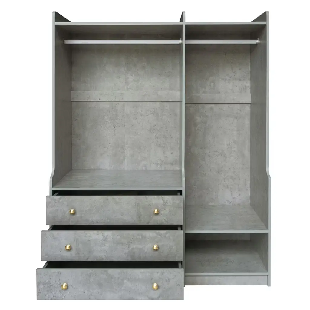 Revamp your wardrobe with our Open Wardrobe, designed to combine style and practicality effortlessly. Featuring two robust hanging rods, five versatile shelves (including two at the top for maximum storage), and three spacious drawers, this wardrobe provides ample room for all your clothing and accessories. Its modern design not only keeps your essentials organized and accessible but also adds a chic touch to any space.