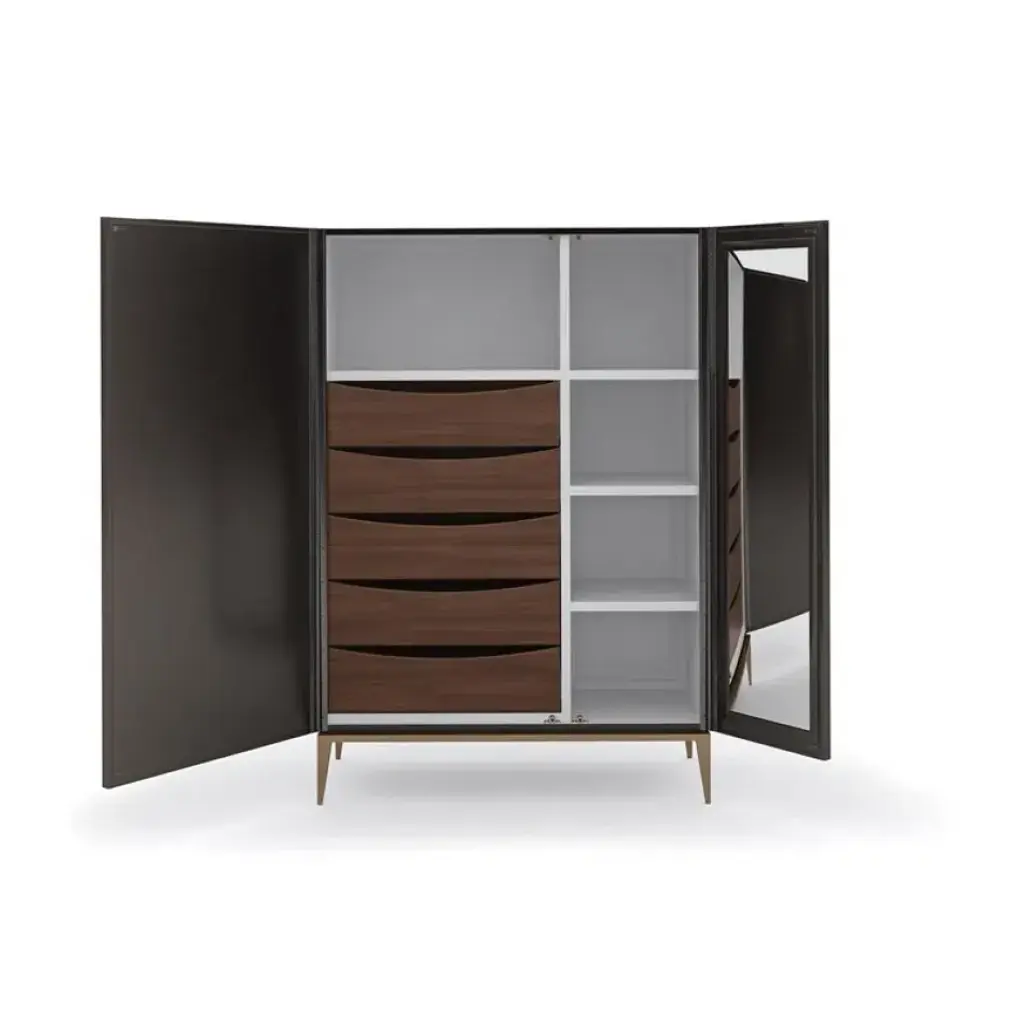 Out Of Line Armoire Dark Chocolate, Rich Walnut, Almost White, Champagne Gold