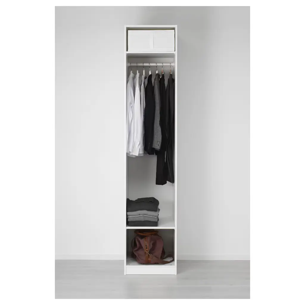 PAX / ÅHEIM Wardrobe combination - white/mirror glass 19 5/8x23 5/8x93 1/8 ". 10-year Limited Warranty. Read about the terms in the Limited Warranty brochure. You can easily adapt this ready-made PAX/KOMPLEMENT combination to suit your needs and taste using the PAX planning tool. Handles included.