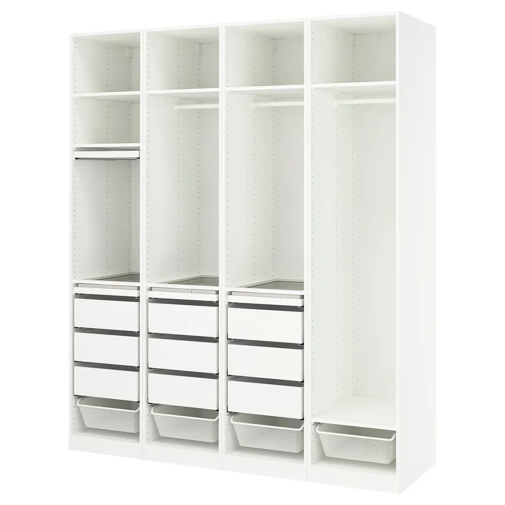 PAX Corner wardrobe - white 82 3/4/63 1/8x79 1/4 ". 10-year Limited Warranty. Read about the terms in the Limited Warranty brochure. You can easily adapt this ready-made PAX/KOMPLEMENT combination to suit your needs and taste using the PAX planning tool.