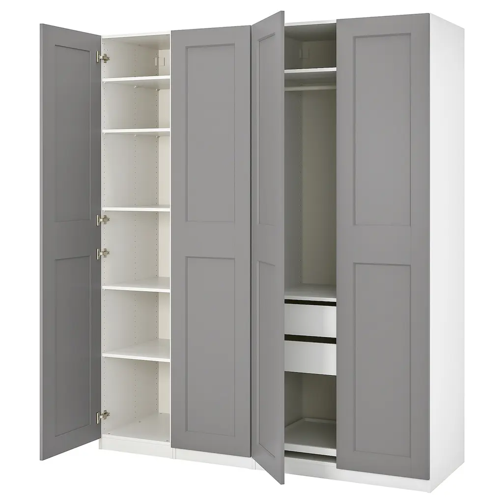 PAX / GRIMO Wardrobe combination - white/gray 78 3/4x23 5/8x93 1/8 ". 10-year Limited Warranty. Read about the terms in the Limited Warranty brochure. You can easily adapt this ready-made PAX/KOMPLEMENT combination to suit your needs and taste using the PAX planning tool.