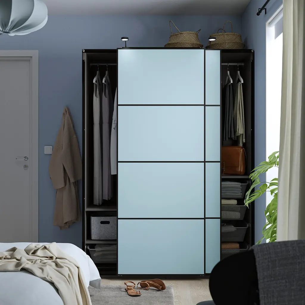 PAX / MEHAMN Wardrobe with sliding doors - dark gray/double sided light blue 59x26x79 1/4 ". 10-year Limited Warranty. Read about the terms in the Limited Warranty brochure. You can easily adapt this ready-made PAX/KOMPLEMENT combination to suit your needs and taste using the PAX planning tool.