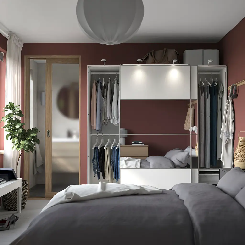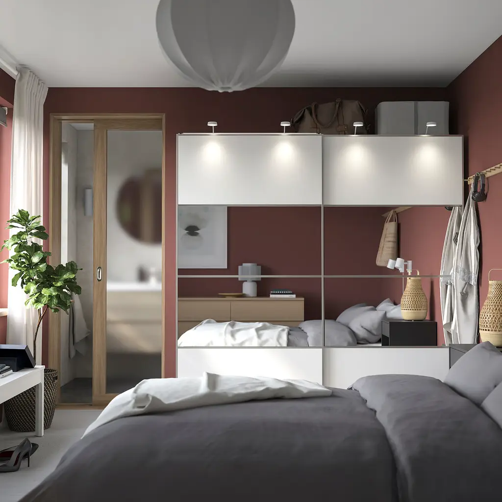 PAX / MEHAMN/AULI Wardrobe with sliding doors - white double sided/white mirror glass 78 3/4x26x79 1/4 ". 10-year Limited Warranty. Read about the terms in the Limited Warranty brochure. Adjustable feet make it possible to compensate for any irregularities in the floor.