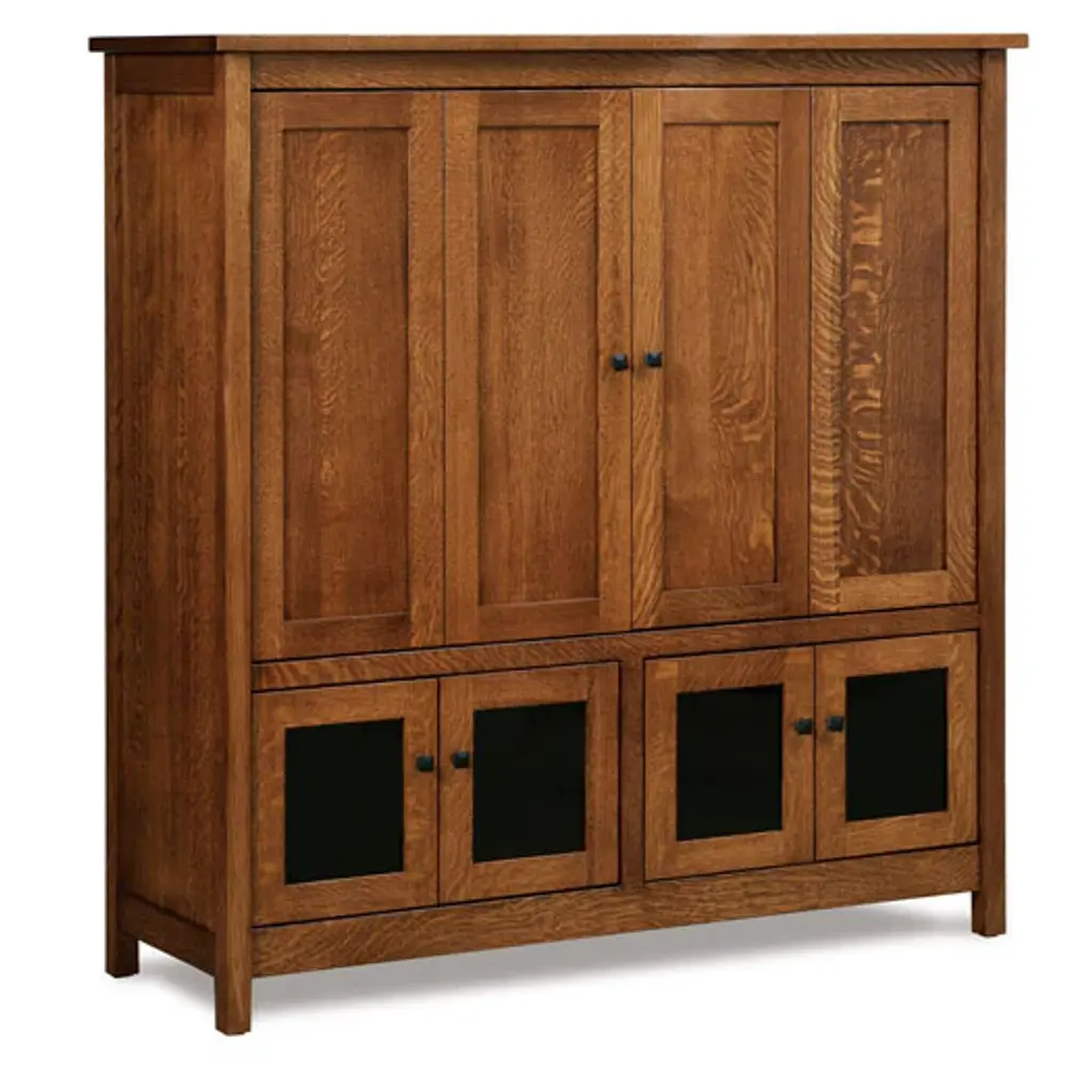 The Petite Mt. Eaton-Bunker Hill Computer Armoire, measuring 46" W x 21" D x 54" H is a compact and elegant workstation. This well-crafted piece features wrap-around doors for easy access and comes with P3014-SN hardware for a seamless finish. Choose your style through these customizable features from the many species of woods available,
