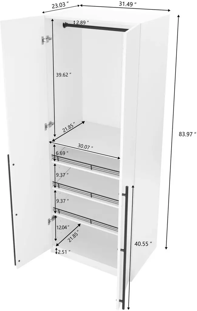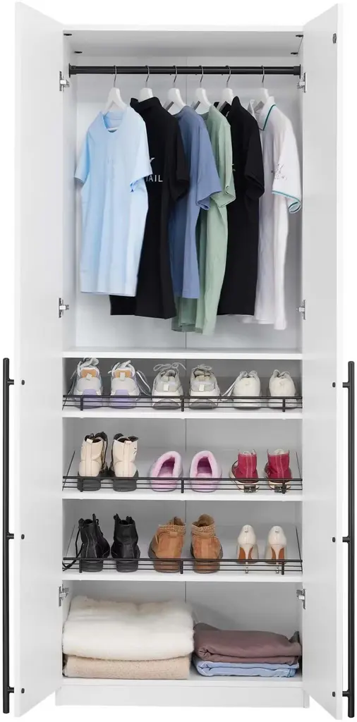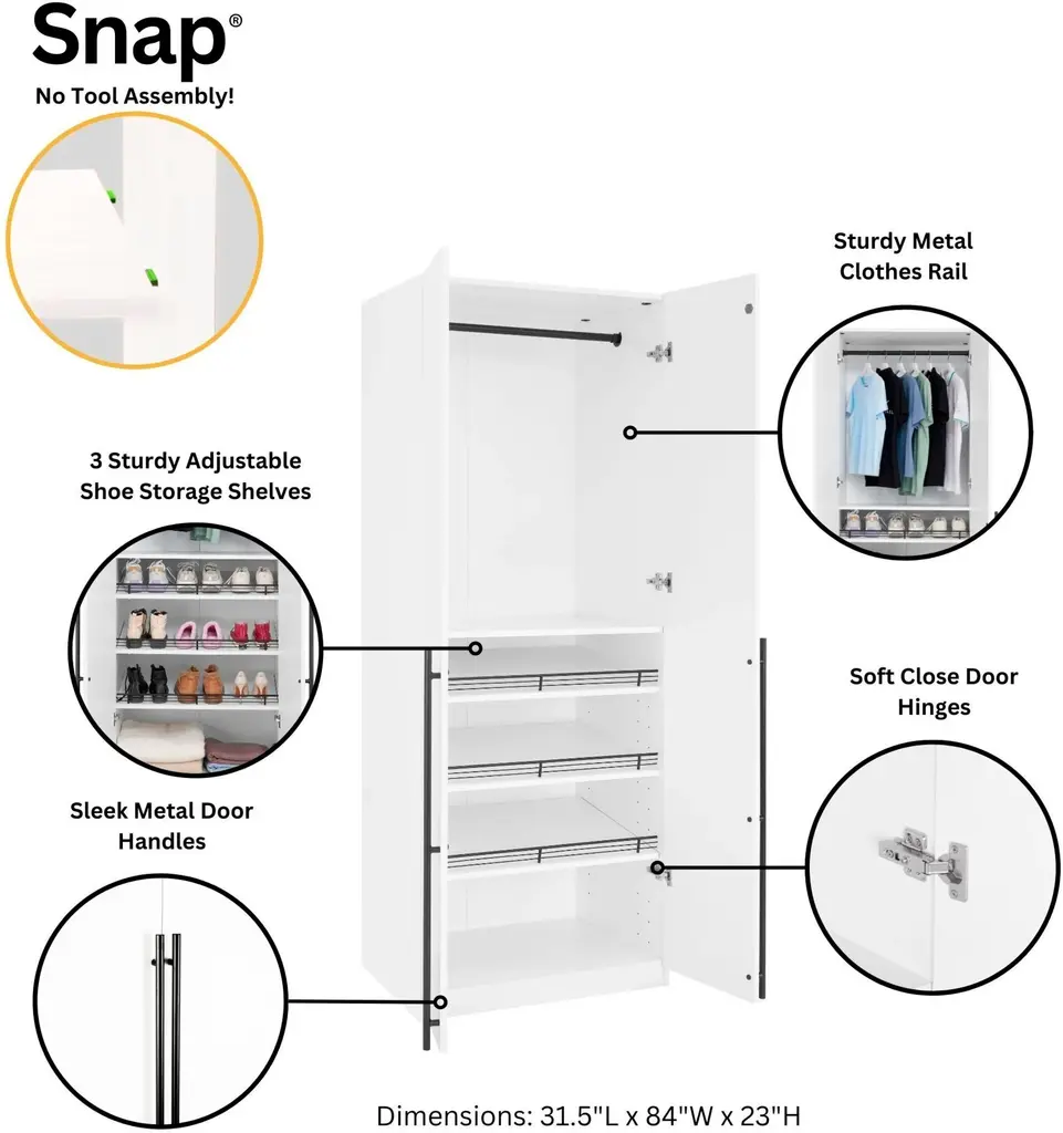 Rian Wardrobe Closet With 1 Hanging Rod, 3 Shoe Shelves, And 1 Basic Shelf - White