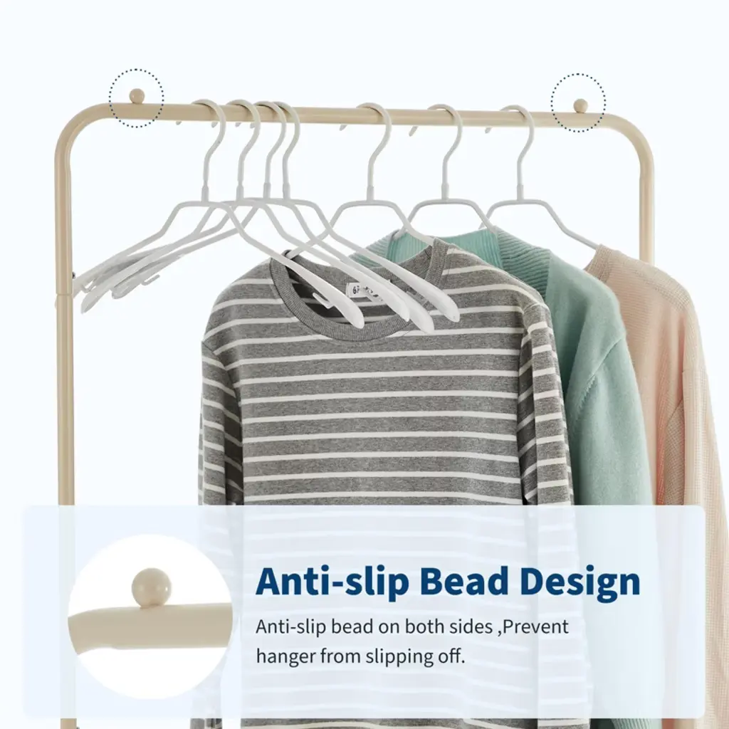 This rolling clothes rack offers a practical and stylish solution for organizing clothes and accessories in any room. Featuring a sturdy hanging rod, spacious basket, and additional storage shelves, it's designed for easy access and efficient storage. Smooth-rolling wheels and locking brakes provide effortless mobility and secure placement, while anti-slip ends and side bars keep hangers and items safely in place. Assembly is simple, making this wardrobe rack the perfect portable organizer for bedrooms, laundry rooms, and more.