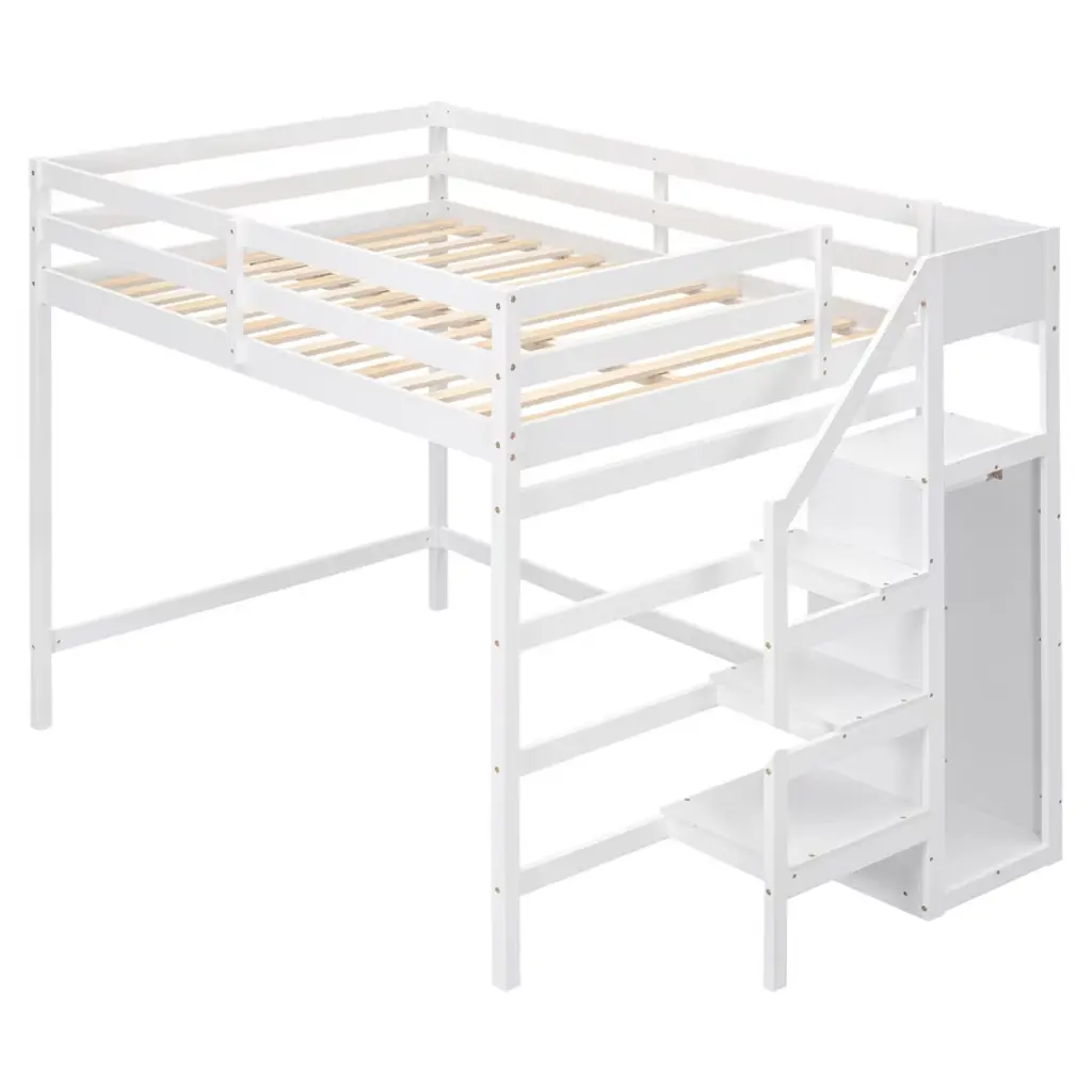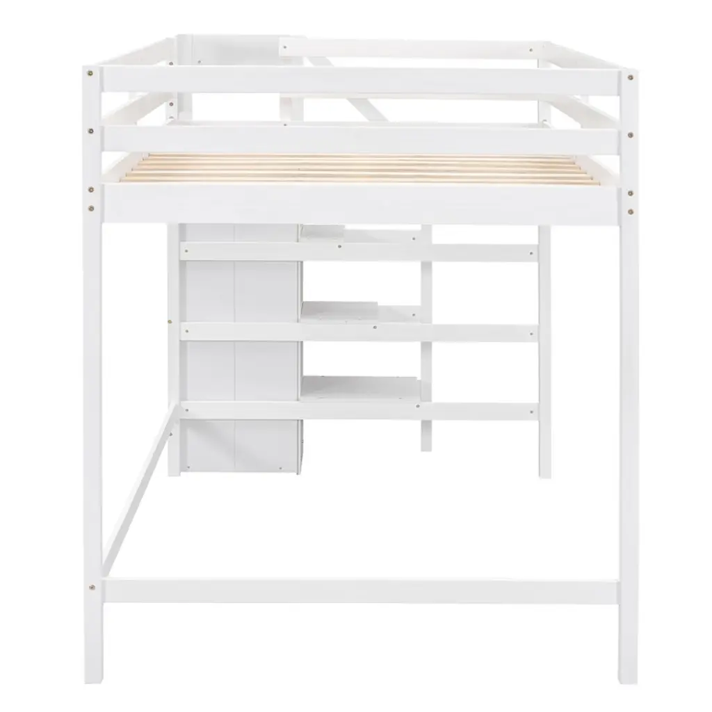 Sapphtopaz Full Size Loft Bed With Built-in Wardrobe,space-saving Loft Bed Frame With Ladder & Guardrail, Wood Kids Full Bed For Teens & Kids, White