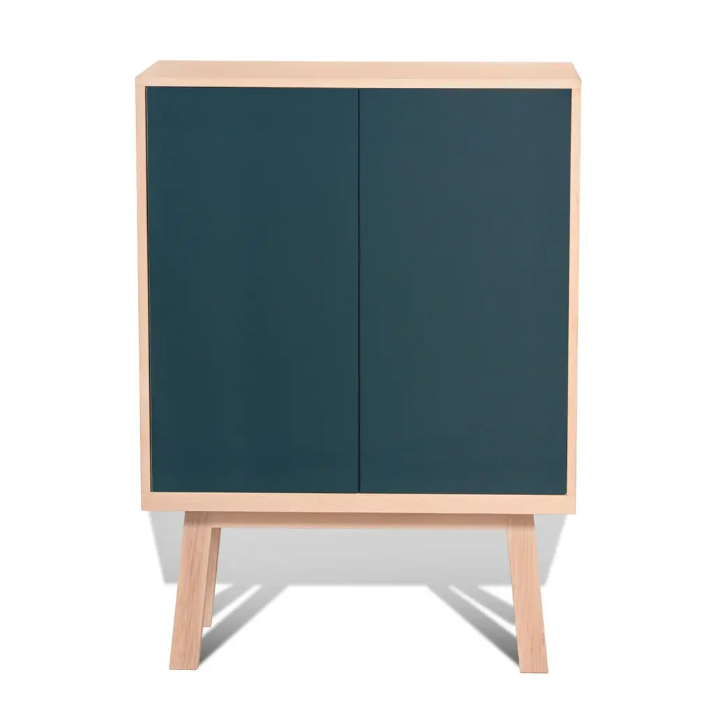 Sea Blue Scandinavian 2 Door Wardrobe Cabinet In Ash Wood