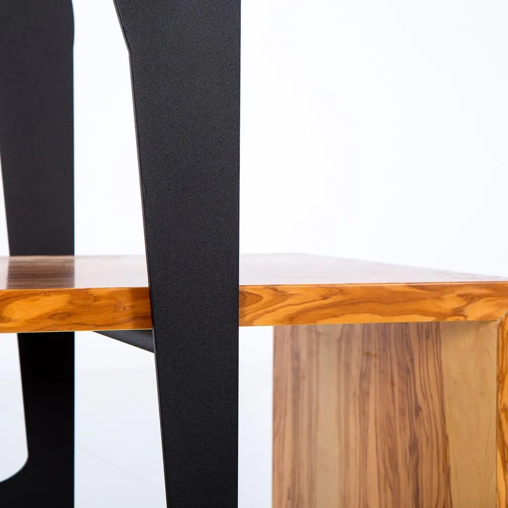 This sophisticated and unconventional piece merges art and design and reinterprets the traditional concept of a wardrobe with a contemporary twist. Freed from spatial constraint, this sculptural wardrobe is reduced to a pure iron frame of classic inspiration, while the rectangular bench, made of wood with a natural finish, is placed in a transversal line to create visual contrast. Designed by architects Flore & Venezia, this captivating piece will suit any contemporary interior, both residential and commercial. The bench measures 165 x 54 x 50h cm.