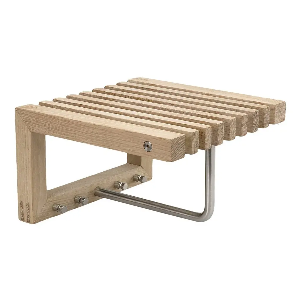 The Cutter Mini-Wardrobe is a very stylistically pure collection of shelves that, despite its modest size, incorporates a hanger rail, four hooks and a hat shelf. A practical little Cutter Box for gloves and caps can be placed on the shelf. Skagerak is a family-owned company with historical roots in Scandinavian geography and proud furniture traditions. Our passion for wood and our focus on quality have remained intact, as we have developed into a modern design brand with an extensive selection of contemporary products in a wide range of materials, created by established designers as well as up-and-coming talents. We stand for responsible production, transparent working relations and good working conditions. We support and adhere to the United Nations' ten principles for CSR and only use legally sourced timber. Our products fall into three categories: Interior, Outdoor and Accessories, and we export to forty countries. We are proud of that achievement and attribute it to our efforts to create functional products for real life.