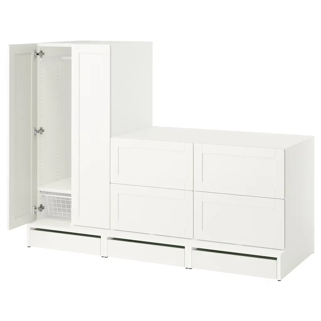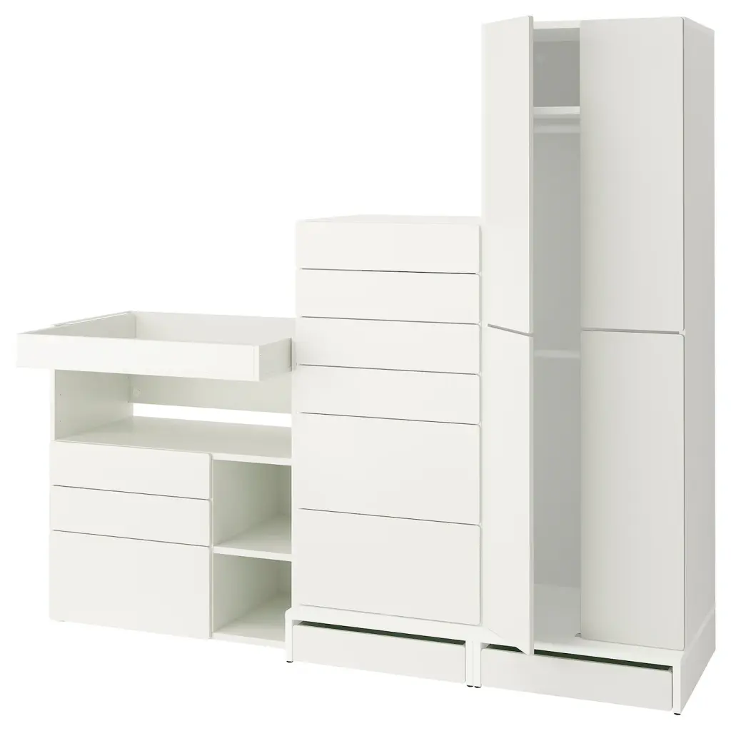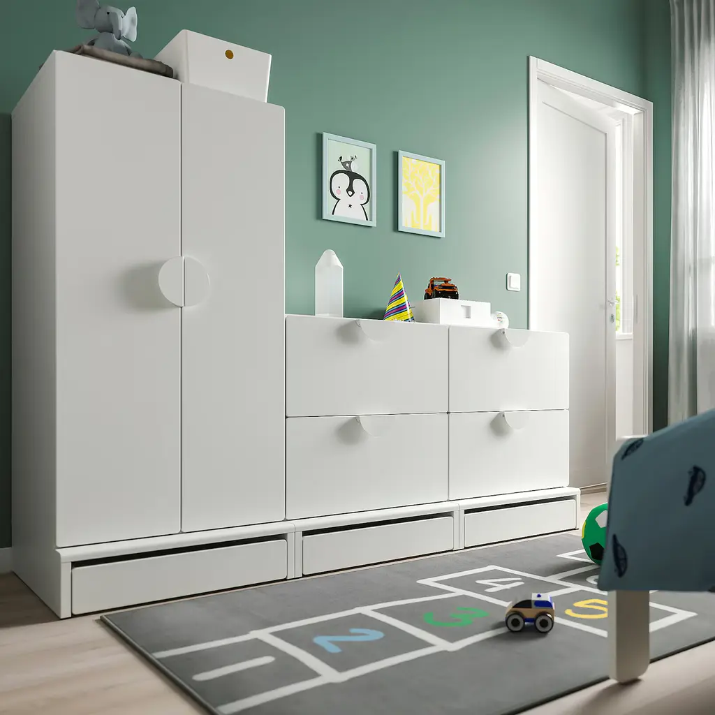 SMÅSTAD / UPPFÖRA Wardrobe - white white/with 2 chests of drawers 70 7/8x25 5/8x53 1/2 ". This wardrobe is adapted to a younger child's height and motor skills so that they can reach and hang up their clothes on their own. The doors have soft-closing hinges which make them close softly and quietly.