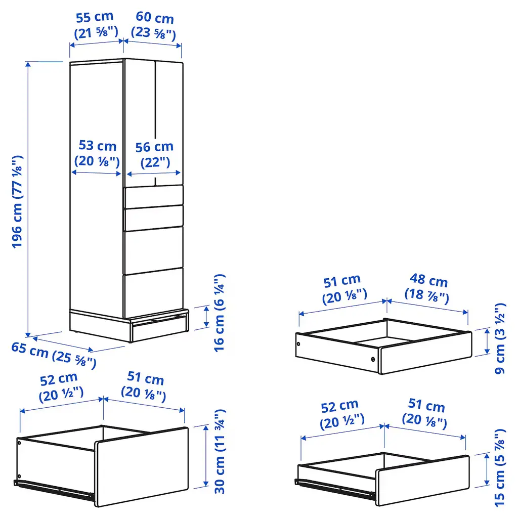 Småstad / Uppföra Wardrobe - White White/with 4 Drawers 23 5/8x25 5/8x77 1/8 "