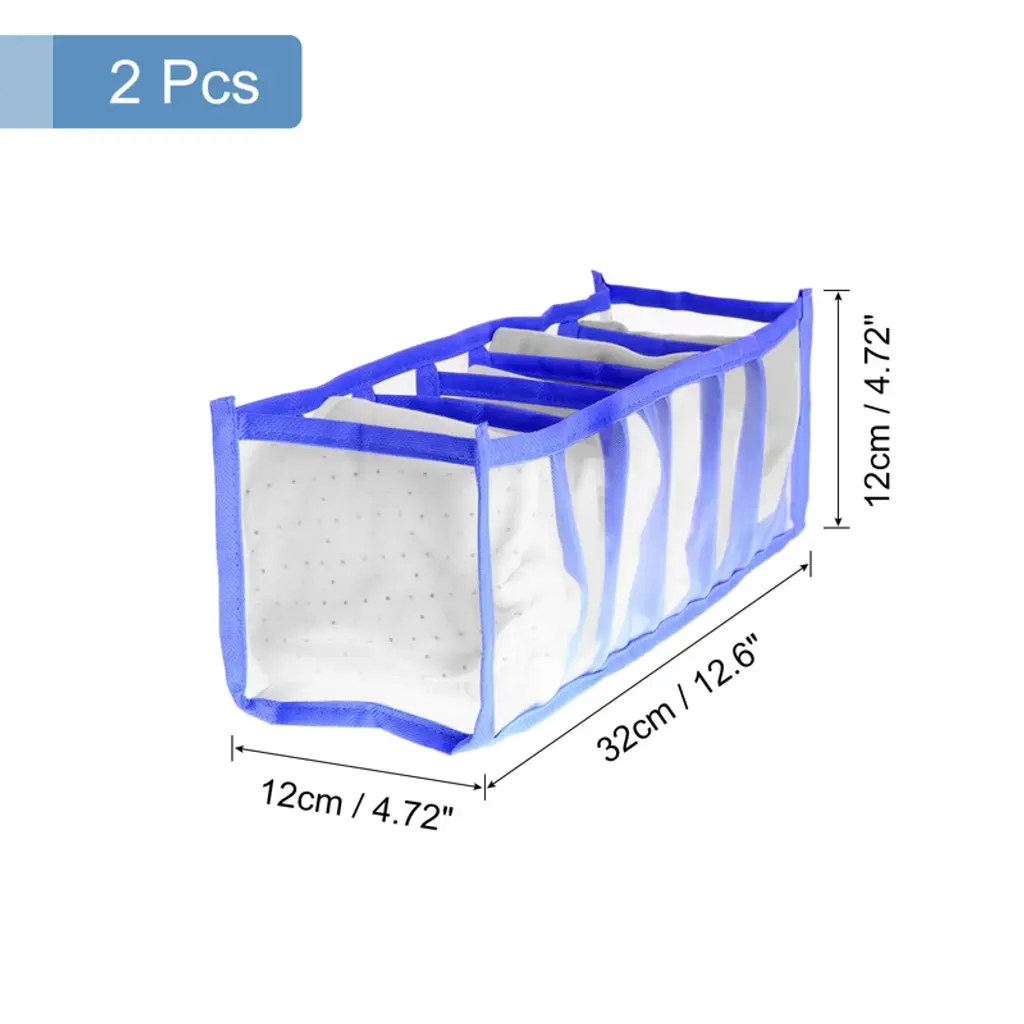 Unique Bargains Nylon Mesh 7 Grids Wardrobe Clothes Organizer Compartment Storage Box 2 Pcs Blue