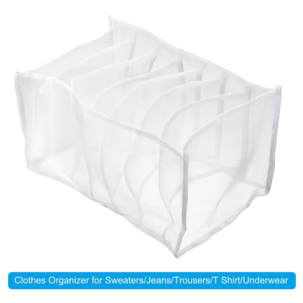 Made of mesh nylon with fine workmanship with soft seams, It's durable and not easy to deform and will not collapse after use. This underwear drawer organizer can be washed with hot water, which makes the clothes drawer organizer more upright and not wrinkled. The visual drawer organizer makes it easy for you to pick up your clothes and easily fold them flat and put them away when not in use to save time and space. The wardrobe clothes organizer is very suitable for storing underwear, socks, scarves, shirts, dresses, skirts, T-shirts, jeans, jackets, sweaters or other items. These underwear organizers can be placed in drawers, closets, or other places. Greatly improve the utilization rate of your wardrobe space. Note: 1. Due to the light and screen difference, the item's color may be slightly different from the pictures. 2. Please allow 1-3cm differences due to manual measurement.