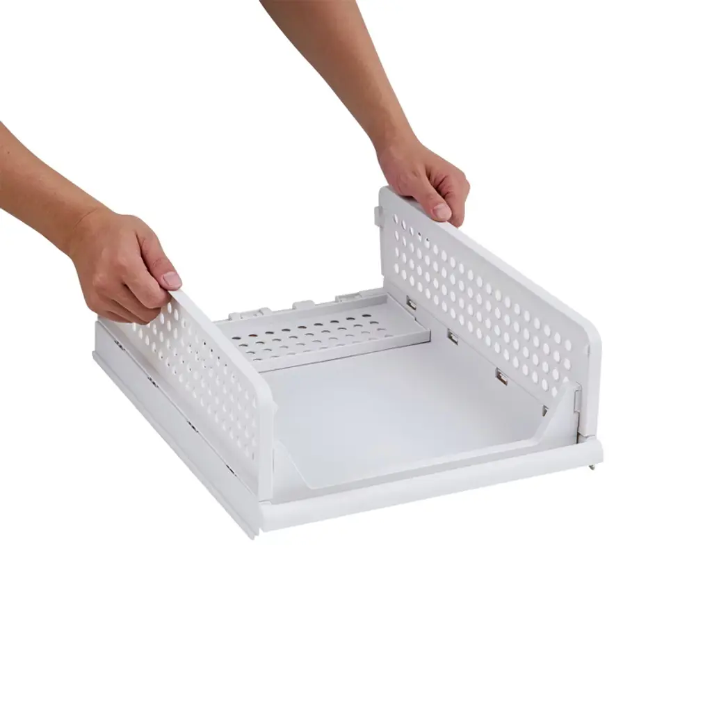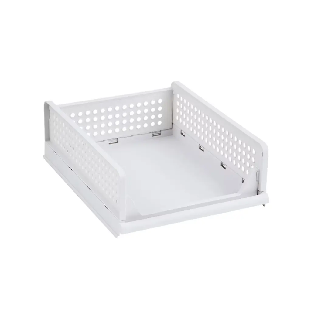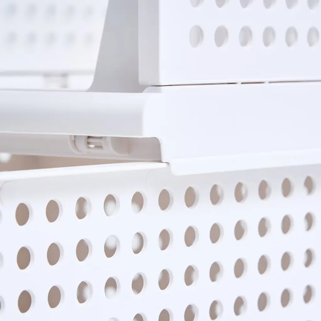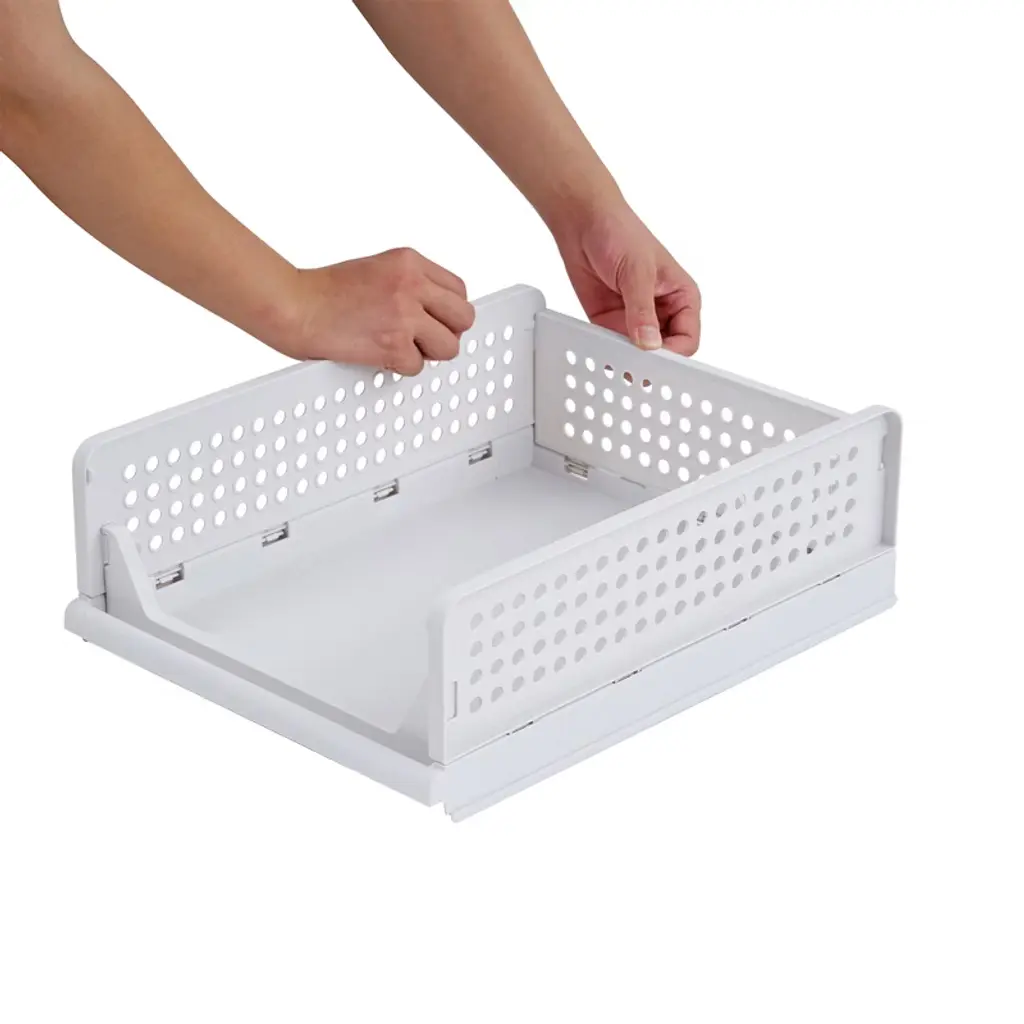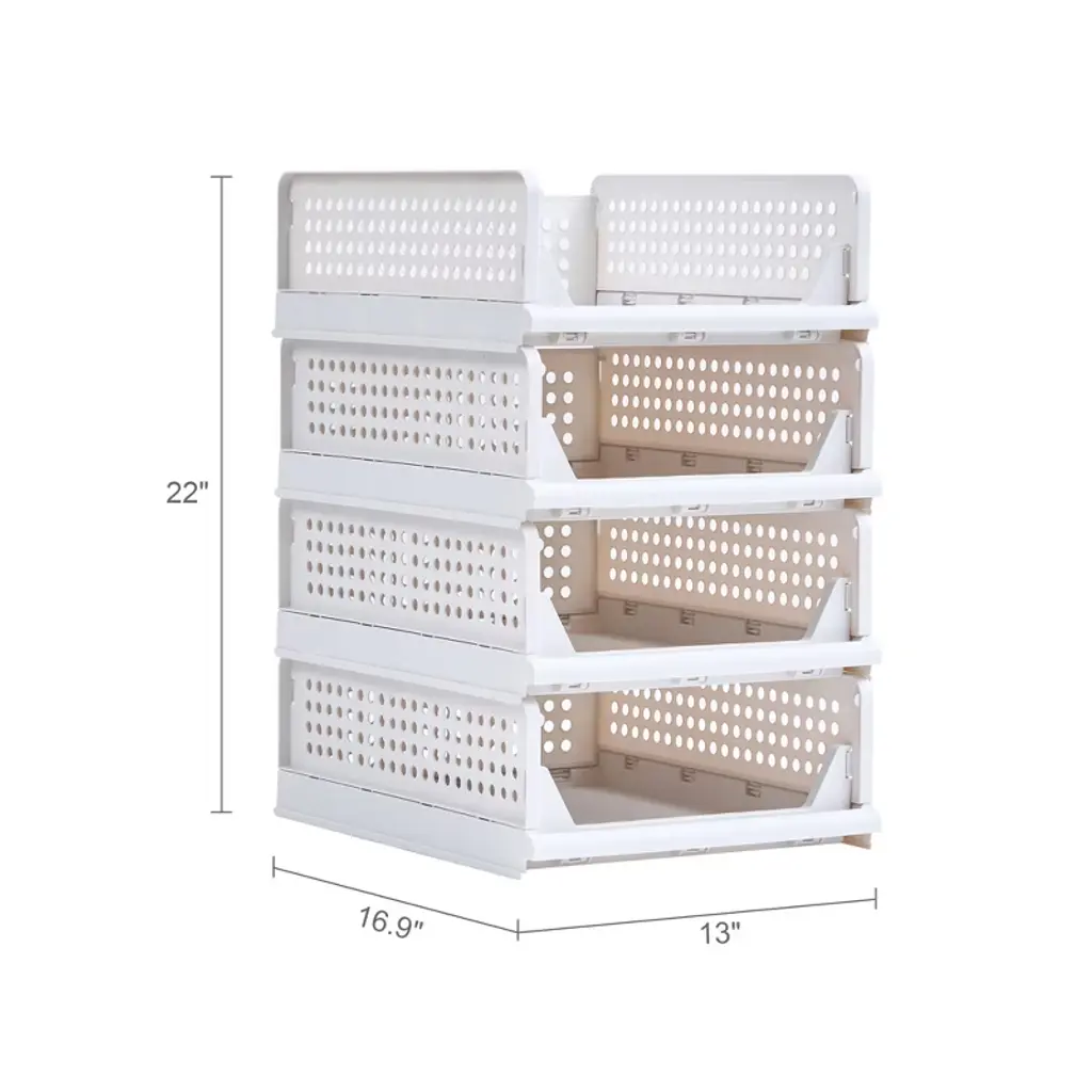 VECELO clothing organizer can be stacked as needed to maximize vertical space, perfect for organizing clothes, toys, snacks and a variety of other items. Ideal for bathrooms, kitchens, living rooms and other spaces, keep your space organized and tidy. The stackable organizer has a built-in slide at the bottom, making it easy to access items even at the deepest level. This wardrobe shelf organizer is made from high quality, sturdy PP plastic that retains its shape and durability. When not in use, they can be folded and stored in a corner to save space.