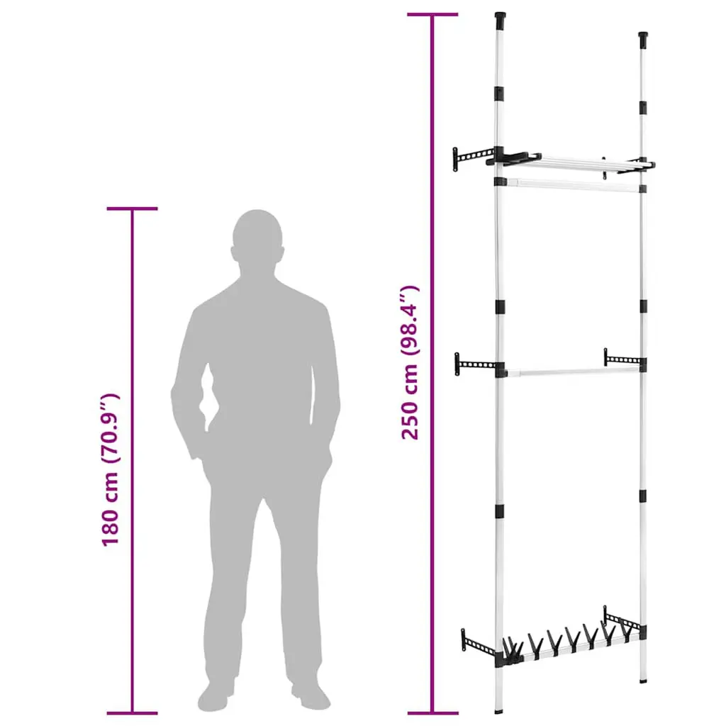 Vidaxl Telescoping Wardrobe System Silver And Black Aluminum And Plastic