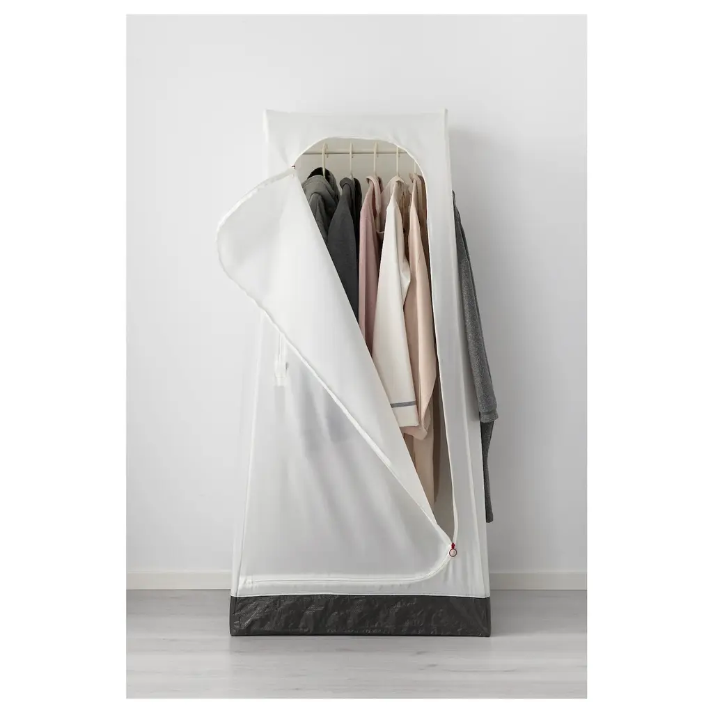 VUKU Wardrobe - white 29 1/8x20 1/8x58 5/8 ". A hook on each side – perfect for clothes, bags or other things you want close at hand. You can easily clean the bottom with a damp cloth since it’s made from durable polypropylene plastic, the same material used for our well-known FRAKTA shopping bag.