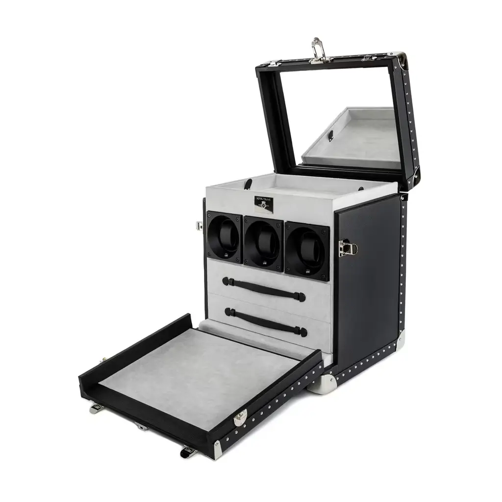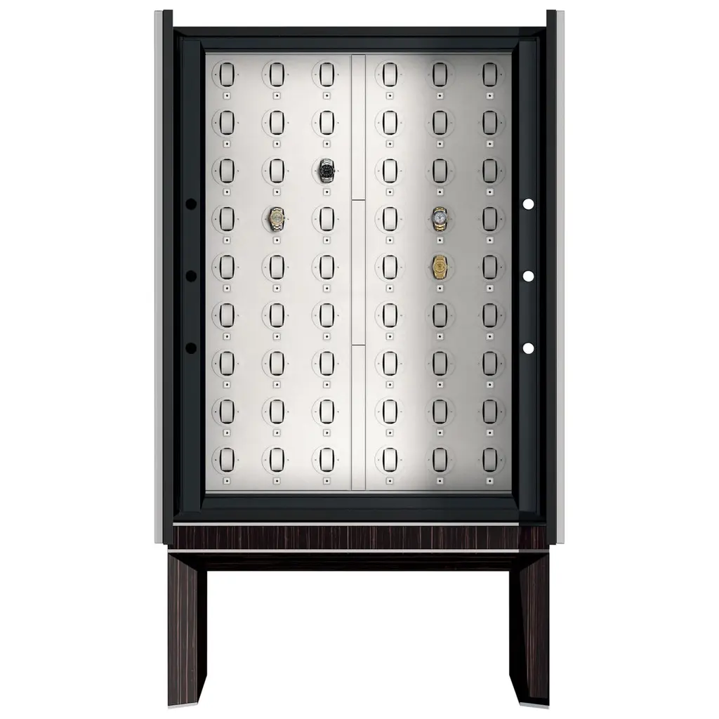 Since 1949, Agresti has crafted the pinnacle of luxury safes, trunks, and jewelry boxes in Florence, using only the finest materials, including full-grain leather, exotic woods, and textures like shagreen. As the premier name in high-end, custom solutions for safeguarding valuables, Agresti integrates cutting-edge security features: biometric access, secret compartments, unique keys, and hidden doorseverything you see in movies, they make real. Favored in multimillion-dollar estates, yachts, and private jets. Contact us to discover more about this exceptional product. Elevate your home decor with the Agresti Il Forziere Delle Ore Wall-Mounted Armoire with Safe. Crafted from polished ebony and black leather, this luxurious piece features a biometric opening device and emergency key system for added security. The Swiss-made watch winders, secret compartment, and antibreaking, bullet-proof glass make it a truly exclusive and indulgent choice for storing your precious belongings.