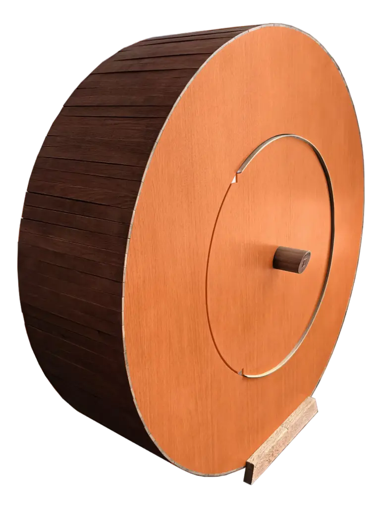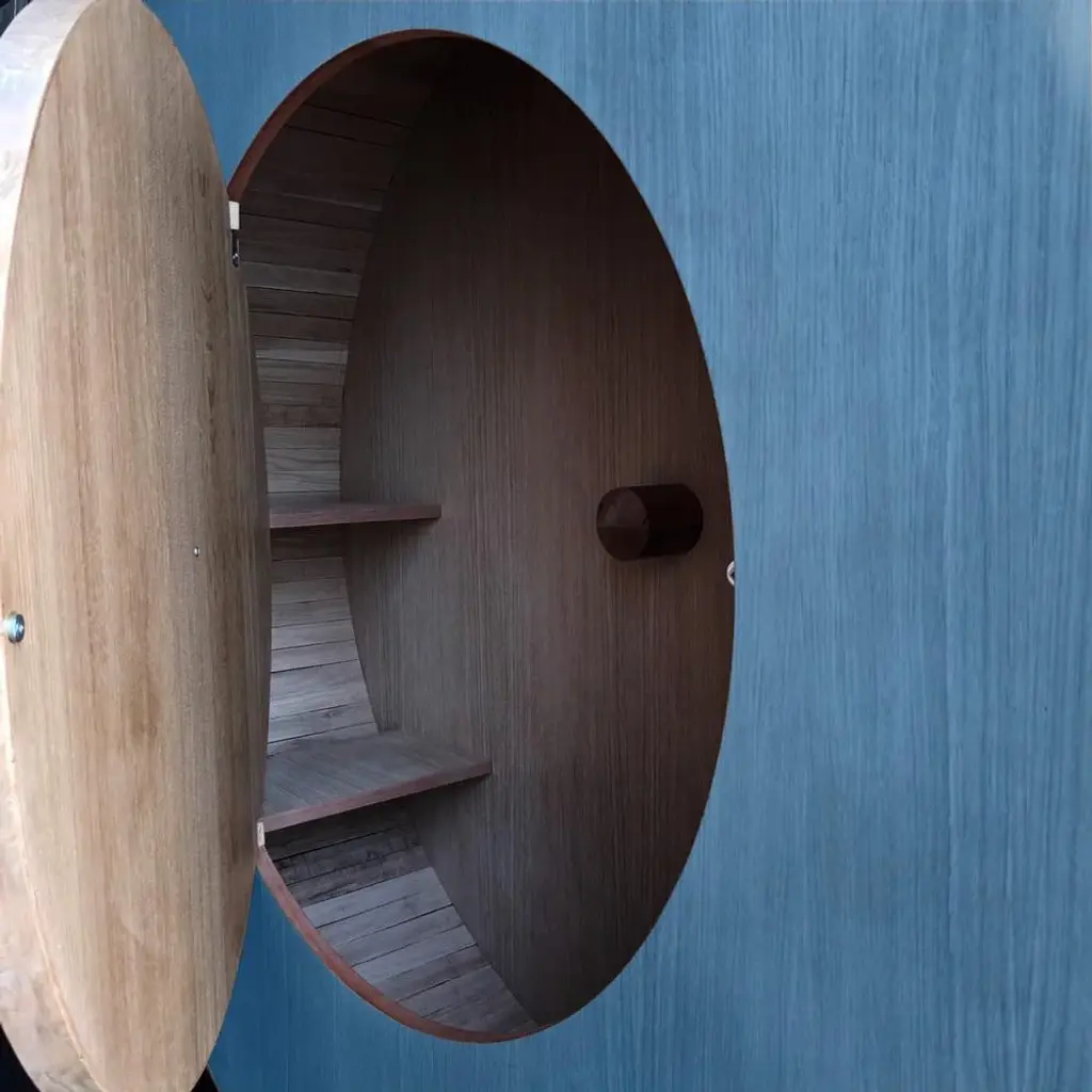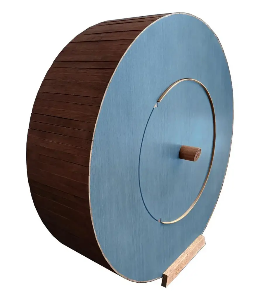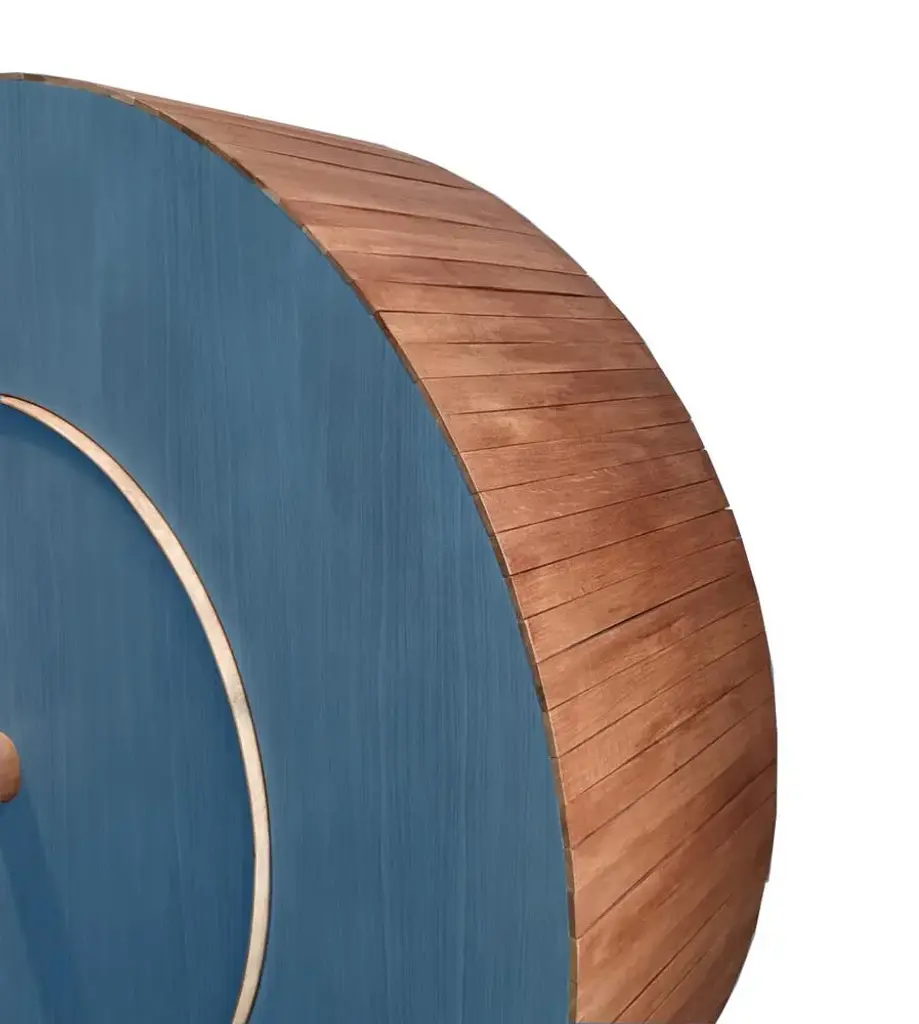 "Macina Azzurro" wardrobe by Pietro Meccani. Designed in 1993, our company offers it in a blue stained oak version with ash and cherry burl accents. Single door and internal shelves. Dimensions (cm): 150 x 47 x h 152. Signed by Maker,Labeled by Maker,Stamped by Maker