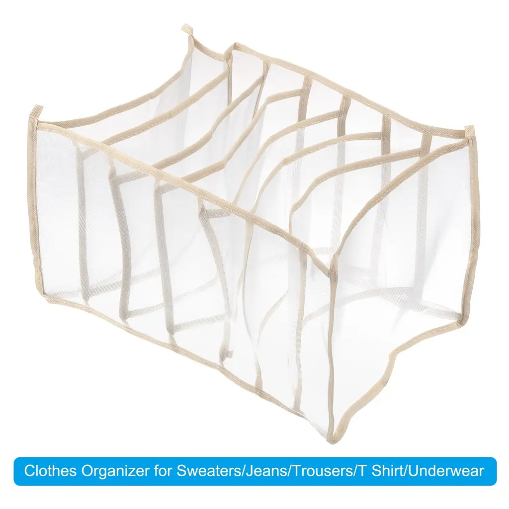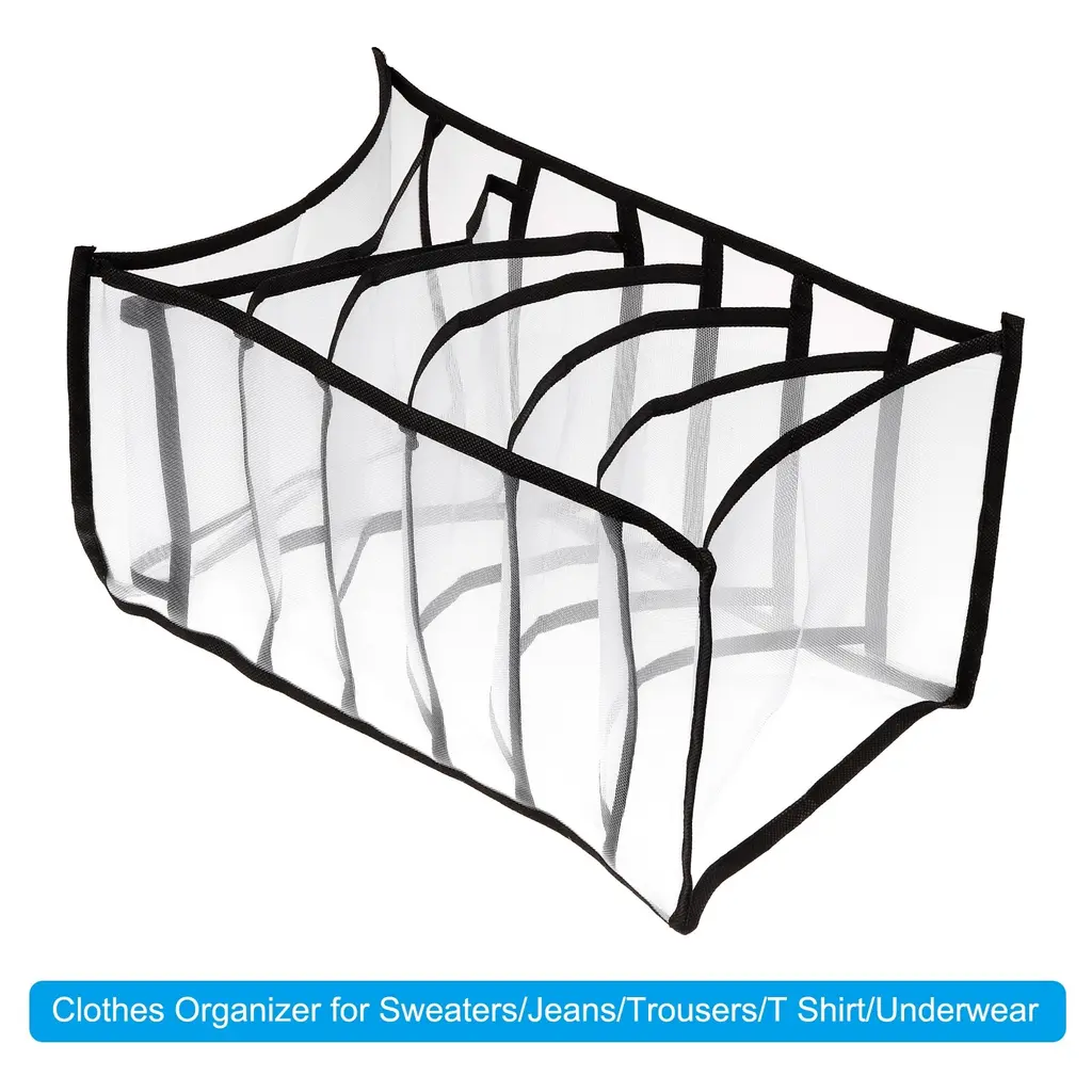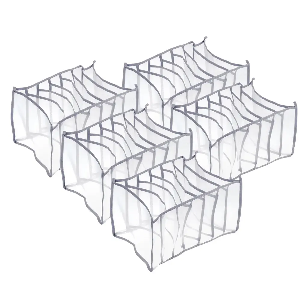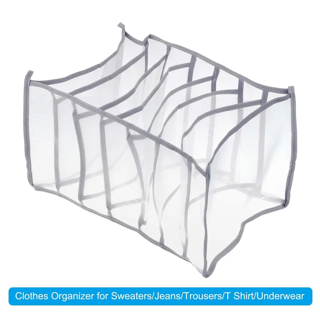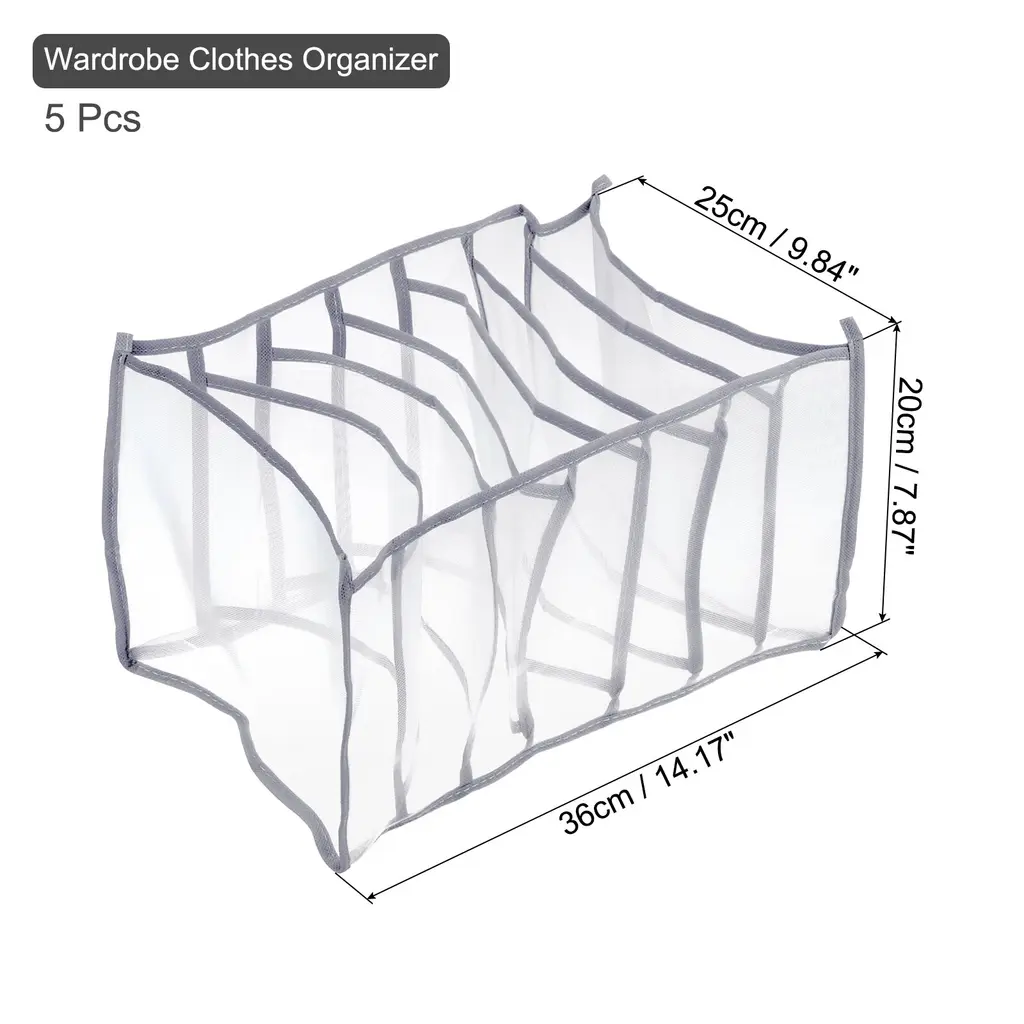 Wardrobe Clothes Organizer For Jeans 5Pcs, 7 Grids Drawer Organizers - 36cm X 25cm X 20cm - Grey