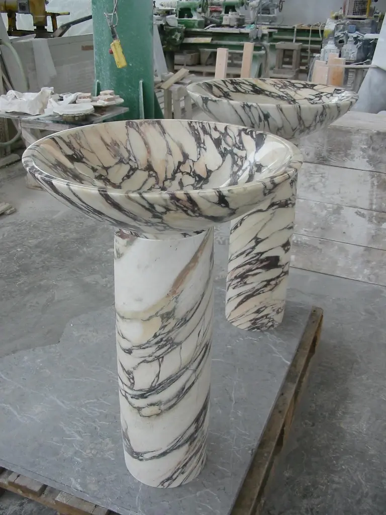 Single consolle marble washbasin designed by Arch. Mario Bellini.Size: Cm diameter 53 x height 82Materials: Fior di Bosco /Bianco Carrara / Sand Beach / Calacatta/Bardiglio Perla.