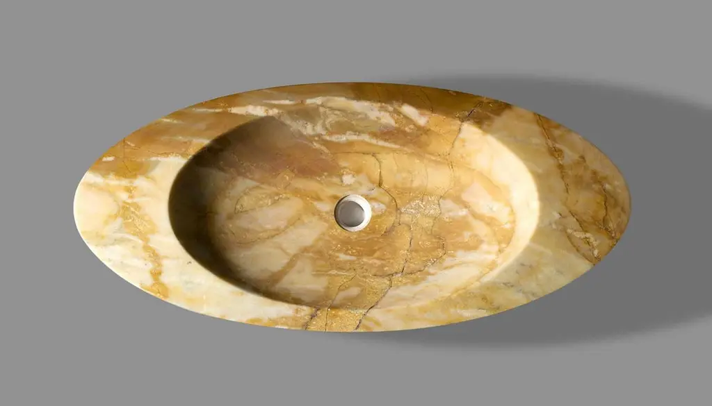 Ellipse Marble washbasin designed by Arch. Matteo ThunSize: Cm diameter 93 x 43 x H 12Materials: Bianco Carrara / Bardiglio Perla / Venus / Sand Beach.