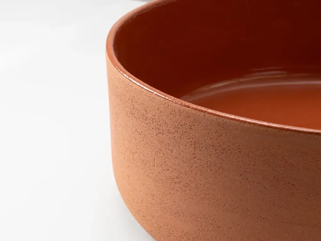 Abaco is a countertop washbasin in natural earth or dark Raku. Simple and capacious shape. Available in various earths and finishes. A true abacus of emotions.