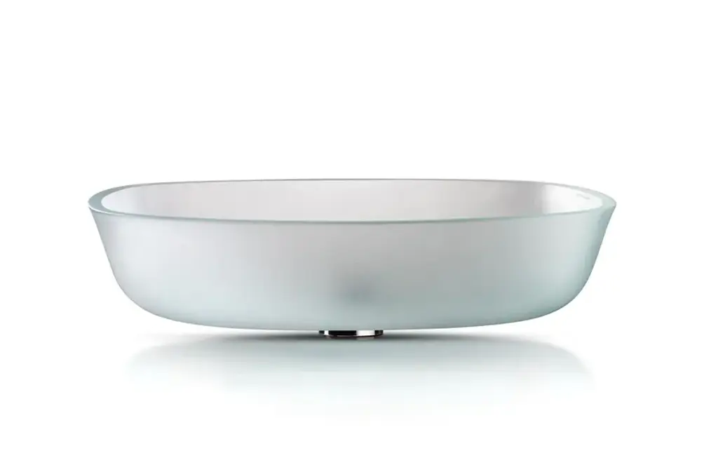 Over level themomoulded transparent basin in SILK extra-clear glass. Complete with mounting support in chromed brass.