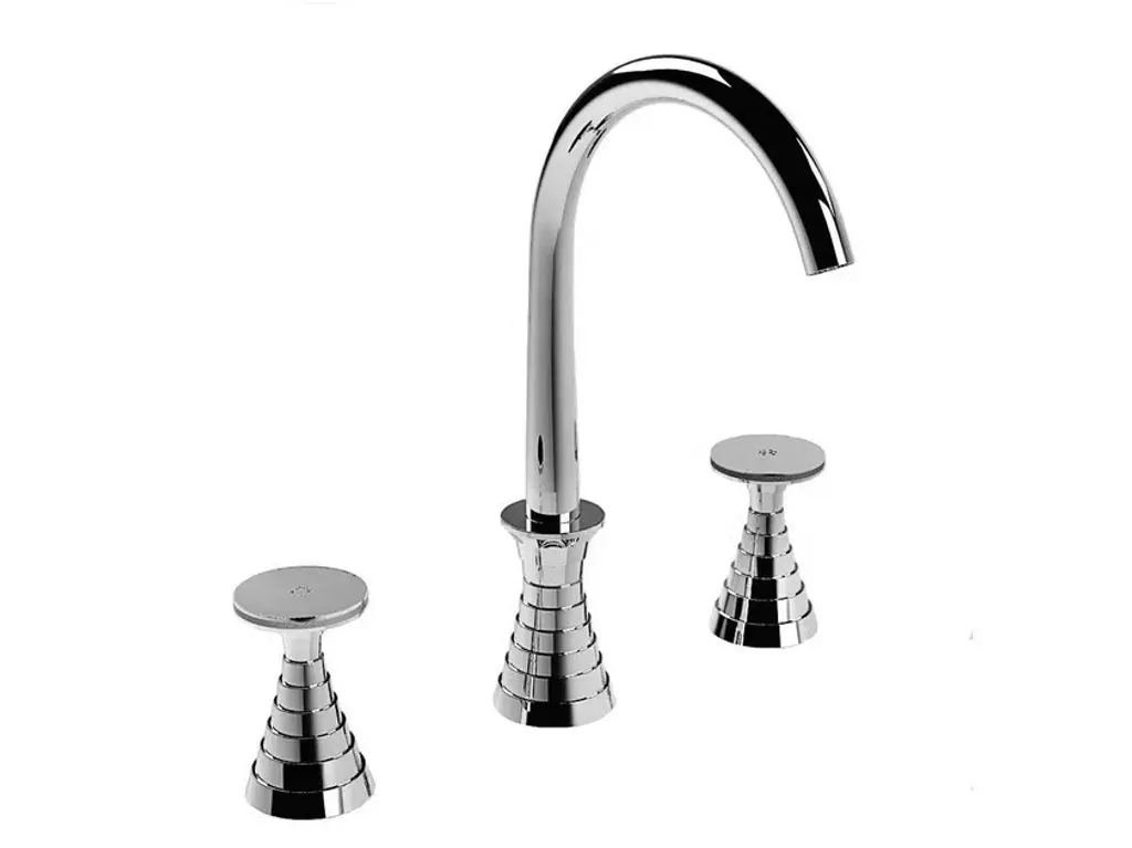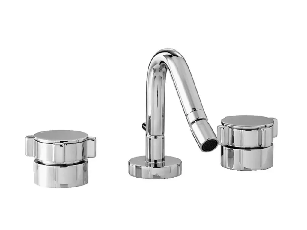 Aster boasts the patented Protector mechanism, a unique technical solution. Mounted inside the handles, it enables the tap to be turned off without straining the seal, thus drastically reducing wear and ensuring an extremely long working life.The Protector requires no adjustment and is maintenance-free.All the spouts are fitted with aerators which, by mixing air into the water, make the jet soft and silent. To facilitate cleaninig of the suppport wall or top, the chromeplated caps can be turned and raised a few millimetres.All seats are made in stainless steel to provide the highest possible resistance against wear and erosion. The Aster 3221 is also available with the TC mixing system. This enables the temperature to be set using the left-hand control, while the right-hand control opens, closes, increases or decreases water delivery at the desired temperature. Aster 3221 (Ref.438)Three-hole washbasin mixer with high non-swinging spout (diam. 18 mm), with pop-up waste, with possibility for installation on horizontal surface not over 45 mm thickAster 3223 (Ref.440)Three-hole washbasin mixer with high non-swinging spout (diam. 18 mm), without pop-up waste, with possibility for installation on horizontal surface not over 45 mm thick