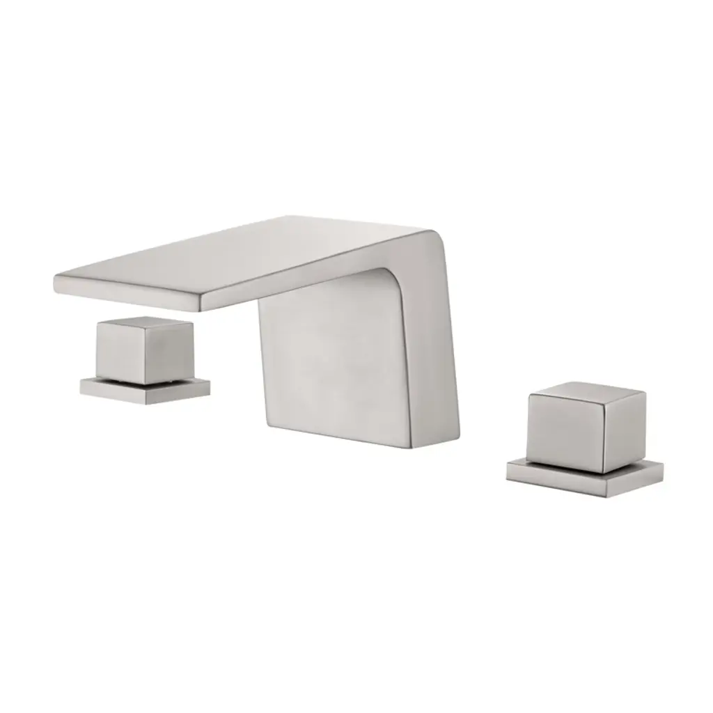Bamboo Quadro 3868MC is a concealed wall-mounted single-handle washbasin mixer, with square spout 22 mm and swivelling aerator.Bamboo Quadro 3224HP is a single-lever mixer for lay-on basin with 4 different spouts (round and square fi xed, round and square swivelling). Raised base (h=120 mm), connecting pipes in copper. On request: higher raised base (h=170mm). Bamboo Quadro 3222HP is single-lever mixer for lay-on basin with 4 different spouts (round and square fixed, round and square swivelling). Raised base (h=120 mm), connecting pipes in copper without pop-up waste and pop-up control. On request: higher raised base (h=170mm).