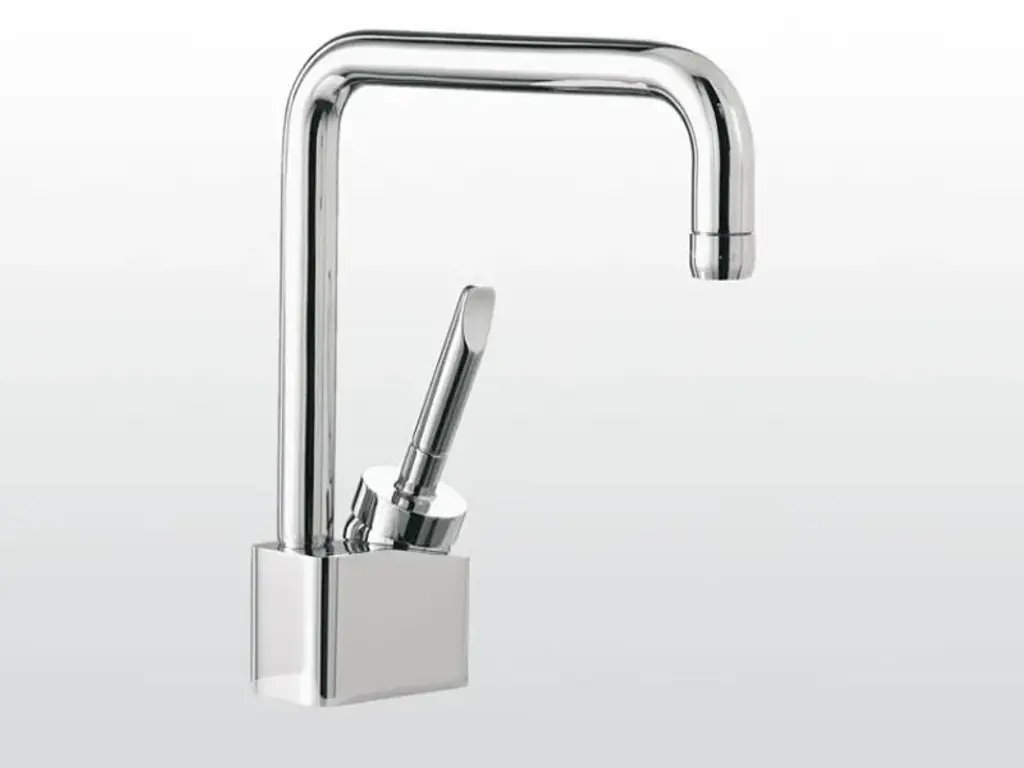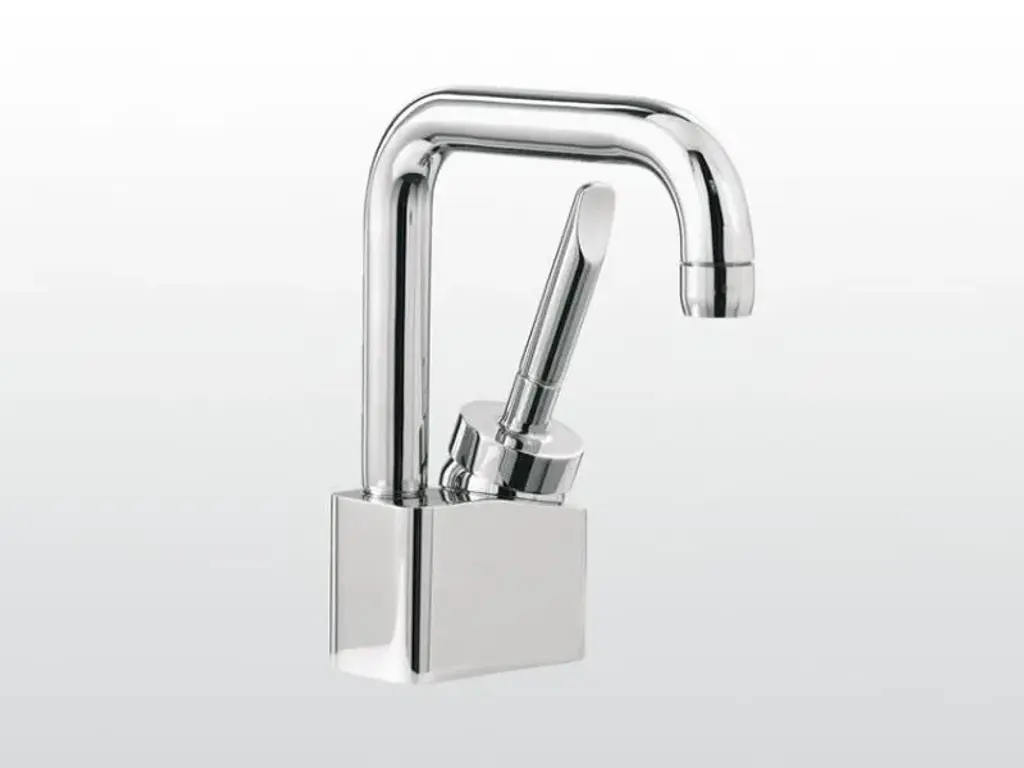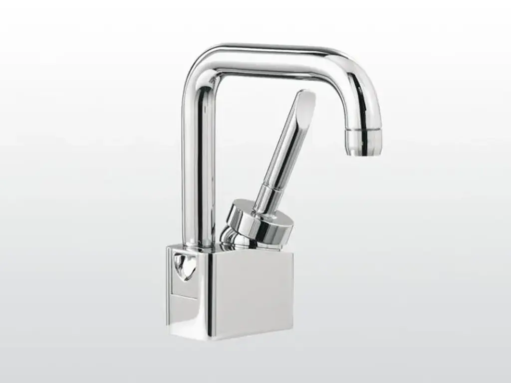 Box 3226: Chrome-plated single handle washbasin mixer with adjustable spout.The Box line of single-lever mixertaps was a precursor of the high-tech and minimalist styles. Its design clearly reveals every function. The tube spout, the housing containing the mechanisms, the control lever with the chamfered grip: every detail points to the simplicity of the manoeuvre required. The overall harmony of the unit gives this mixer tap a clean, essential and technological look. The exclusive adjustment system, which ensures total reliability, consist of two ceramic seats and a disc also in ceramic. A minimal friction area between the disc and the seats ensures soft and gentle movement. All the spouts are fitted with aerators which, by mixing air into the water, make the jet soft and silent.The diverters on the bath-shower mixers return the flow to the bath outlet when the tap is closed, so as to avoid any inconvenience when it is turned.Box 3224 One-handle washbasin mixer with low spout, aerator and pop-up wasteBox 3223 One-handle washbasin mixer with high swinging spout, aerator without pop-up waste and pop-up controlBox 3225 One-handle washbasin mixer with high swinging spout, aerator and pop-up wasteBox 3226 One-handle washbasin mixer with high longer swinging spout, aerator and pop-up waste