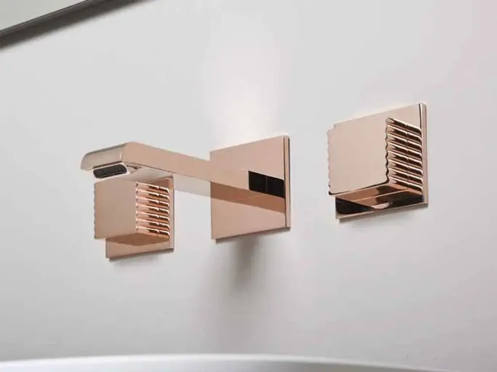 Concealed wall-mounted twin-control washbasin mixer. Ceramic headwork 180. Born from the creativity of architect Maurizio Duranti, Rubinetterie STELLA's 'Casanova' series is inspired by the neoclassical world. The square shapes with cannulated surfaces, reminiscent of the pilasters of classical architecture, give the collection a seductive stylistic sobriety. The mixers, apart from their acclaimed functional efficiency, a feature universally recognised in Stella products, stand out as precious design objects that recall the elegance, lifestyle and refinement of Casanova's Venice. The collection, for optimal insertion in the most diverse furnishing solutions, is offered in 8 finishes: chrome, nickel and nickel PVD, brass PVD, silver, 24-carat gold, bronze and brushed nickel.