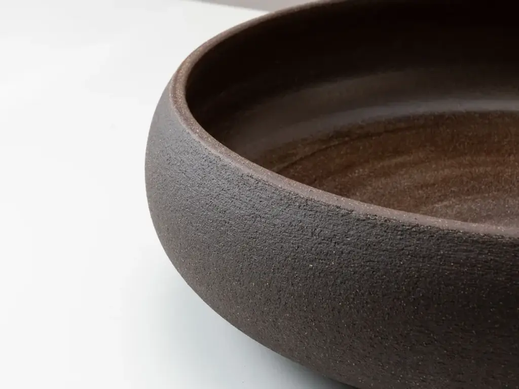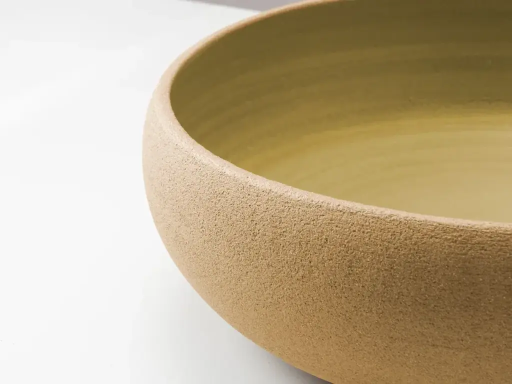 Ciocco is a countertop washbasin in dark refractory clay or ochre. Big brother of ciocco for more spacious rooms where the washbasin becomes the real actor.