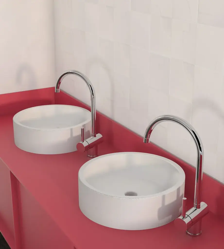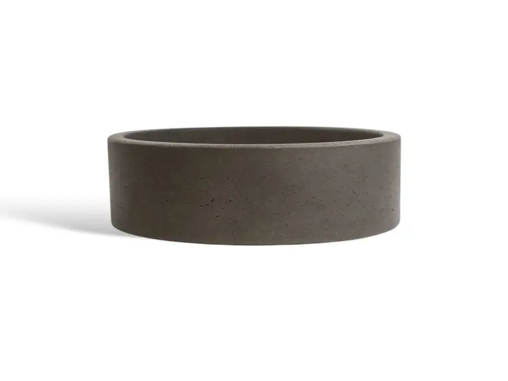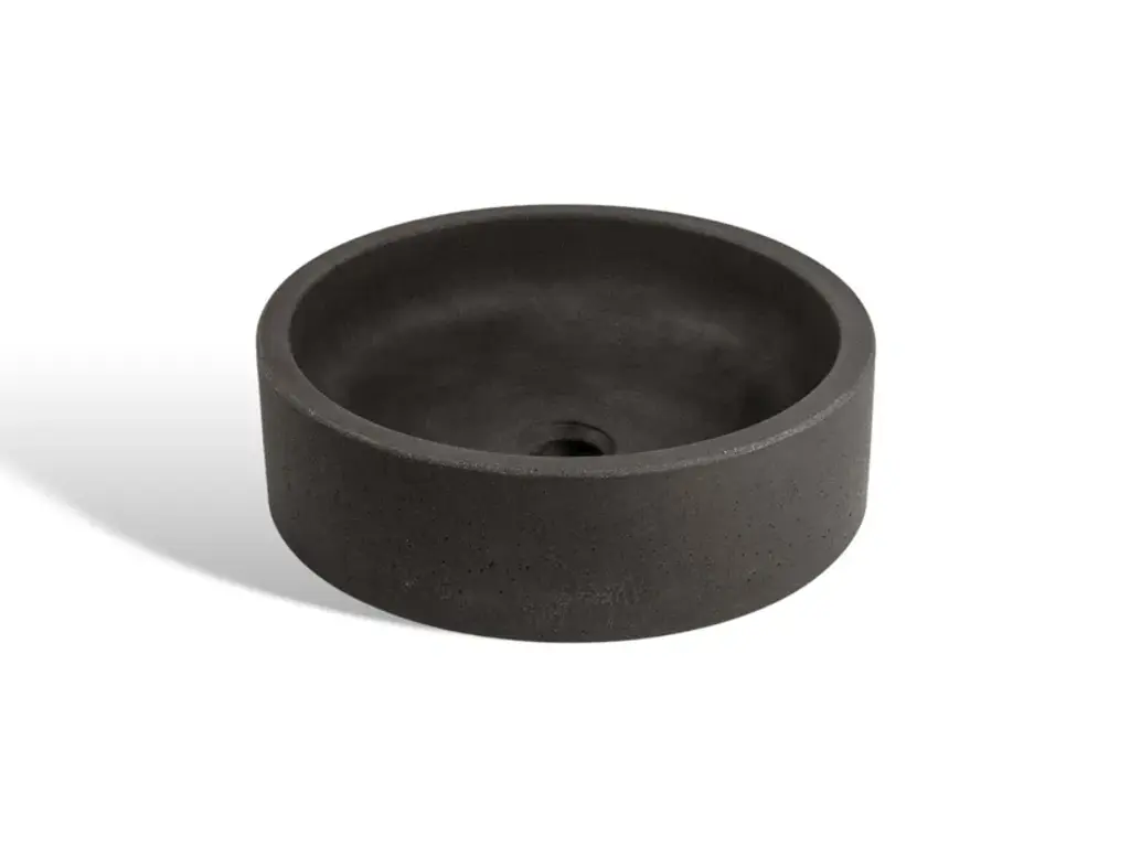 Circum 39 is a round washbasin made of cast concrete. Designed by Urbi et Orbi Studio in 2018.Circum 39 offers a variation of the Circum 48 design, featuring a smaller diameter but slightly increased height. Additionally, we have incorporated a curved inner shape that adds to its aesthetic appeal. The properties of concrete as a base material enhance the minimalist design of the Circum 39 countertop washbasin. The small air holes and the subtle color variations are the small details that shape its character. Ideal for smaller residential and commercial bathrooms, it elevates the space in its own unique way.Available in 4 shades of gray, in various colors from the warm and cool tones of beige, terracotta, olive green, dusty blue, etc.CE Certified