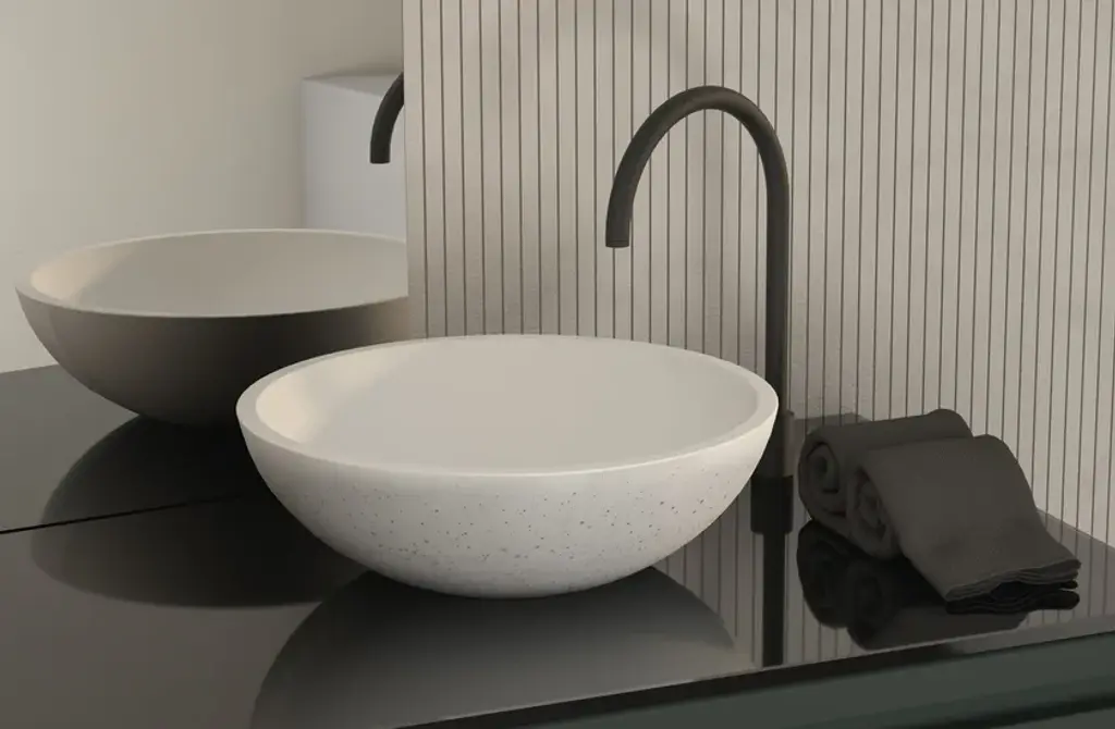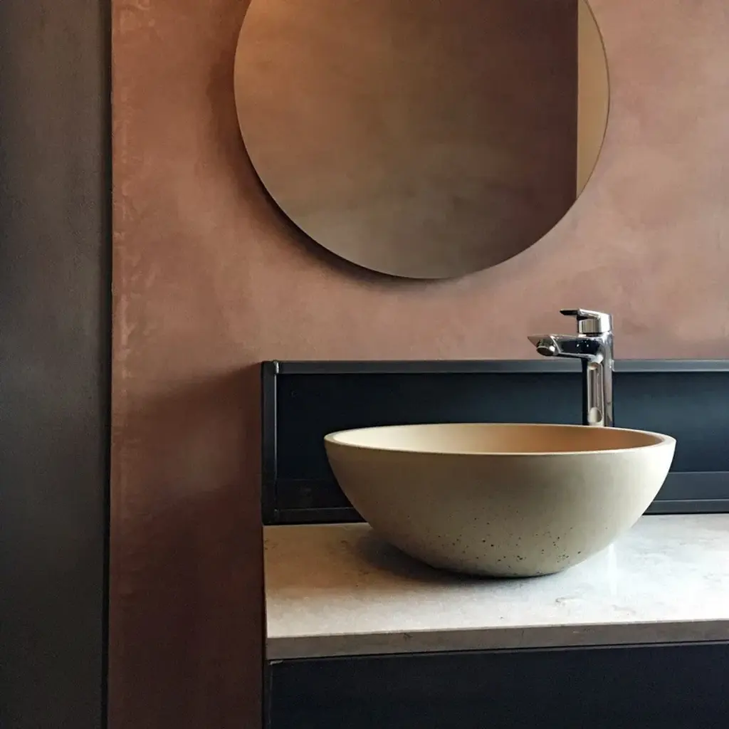 Circum 40 is a round washbasin made of cast concrete. Designed by Urbi et Orbi Studio in 2012.Circum 40 is one of our most popular bowls. The properties of concrete as a base material enhance the minimalist design of the Circum 40 countertop washbasin. The small air holes and the subtle color variations are the small details that shape its character. Ideal for both residential and commercial spaces, it elevates the space in its own unique way.Available in 4 shades of gray, in various colors from the warm and cool tones of beige, terracotta, olive green, dusty blue, etc.CE Certified