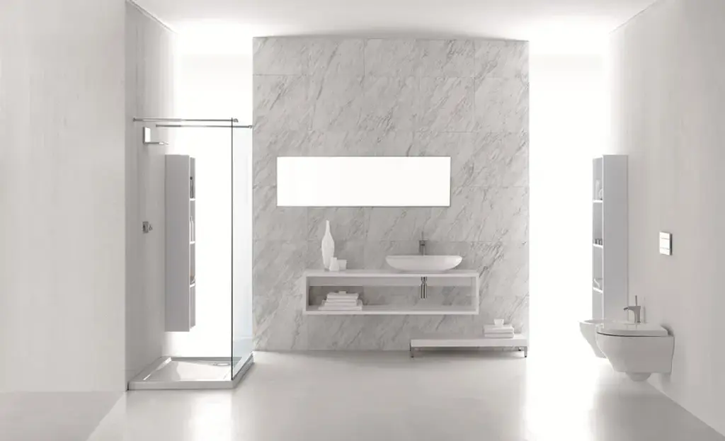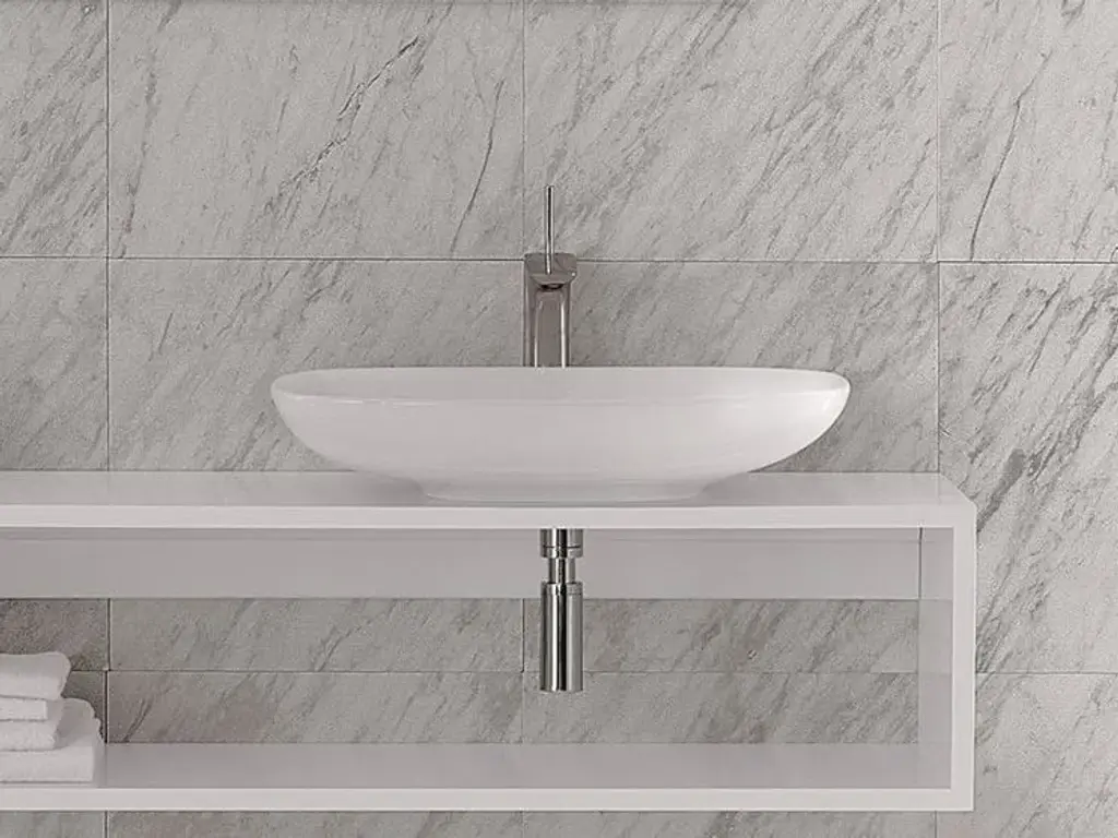 CLEAR is a one hole washbasin, available in 3 sizes. Counter top, wall hung, pedestal or semi pedestal installation.The new range “Clear” is simple, linear, essential and it represents the Olympia answer to the demands of the actual trends of design.“Clear” is characterised by soft volumes and contained dimensions. Its simplicity and elegance are proclaimed by the copious basin of the washbasin, that can be placed on a sober ceramic top or a thin and harmonious pedestal.The soft and wrapping volumes of the “Clear” wash basins have a stylistic grace, that represents aesthetic timeless principle. They are available in four different sizes -750x450 mm, 650x450 mm, 550x450 mm, 450x350 mm. In order to allow a collocation in every kind of place, offering the possibility to have an elegant bathroom even in a small space. The designer of the “Clear” style is articulated in different versions - Back to wall - Water Closet - Wall hung offering a variety of combining for furnishing solutions that satisfy specific needs, matching functionality and style.