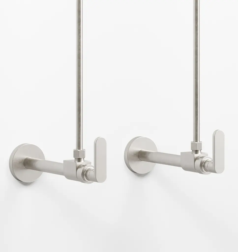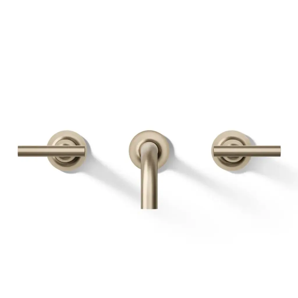 CORSIVO | Wall mounted tap. Wall mounted tap, hot and cold water with spout ø21 L.165 H 127 - stainless steel AISI 316 LAvailable finishes: Brushed stainless steel, Deep grey inox, ceraMINA colors.CORSIVO is a wall-mounted built-in set, mixer plus spout Ø21 L.190 H 180 – AISI 316 L stainless steel.FEATURES – BASIN TAPS: 2-hole, wall-mounted, basin mixer, with aerator. Available finishes: brushed stainless steel, polished stainless steel, deep grey PVD, gold PVD, ceraMINA colors.The slim spout, the straight aerator, the consistent inclination of the lines. Almost as if the tap leans towards the user to make its use more comfortable, especially in the built-in solutions. This is how Corsivo guides water toward the hands, in a complete collection where the fine detailing on the stainless steel underlines the product’s artisanal nature and enhances its surfaces. The collection is also available in the ceraMINA version: a palette of ceramic colors with pearly shades designed to match the perfect hue for every project. From pearl black to calm green, passing through sweet blue, light rose, rich brown, vivid orange, and golden yellow.
