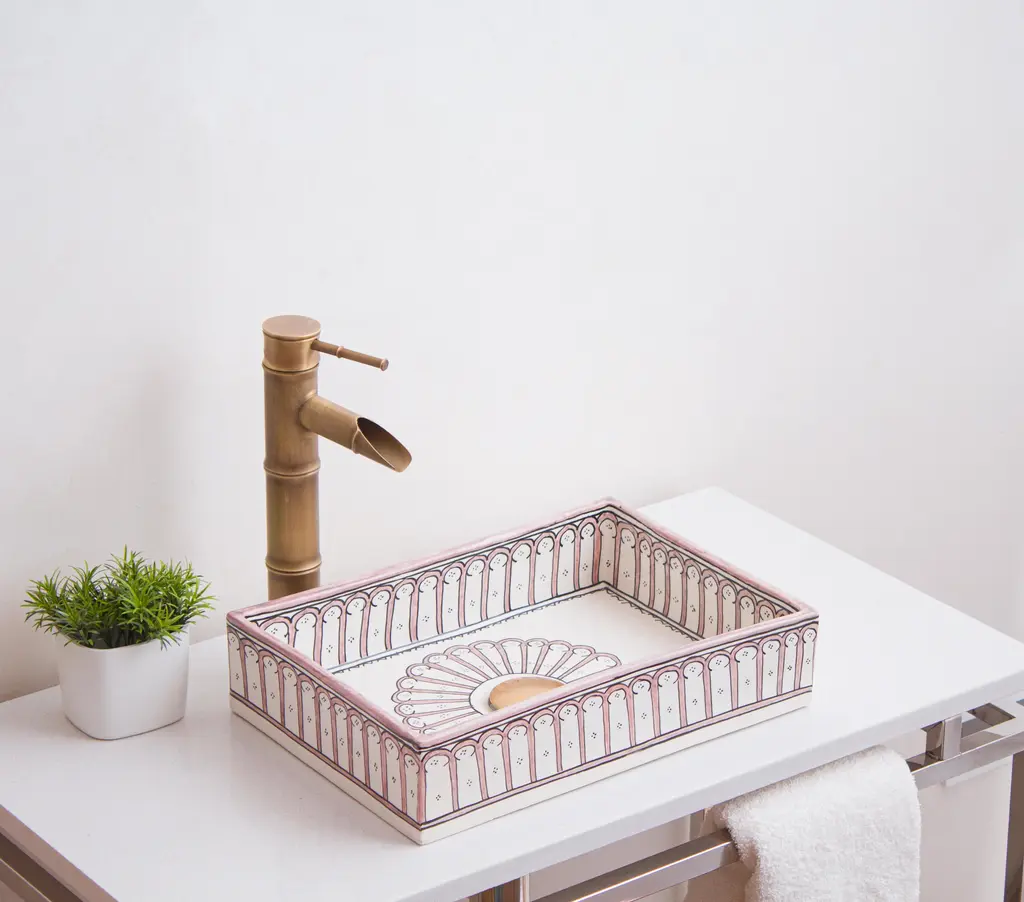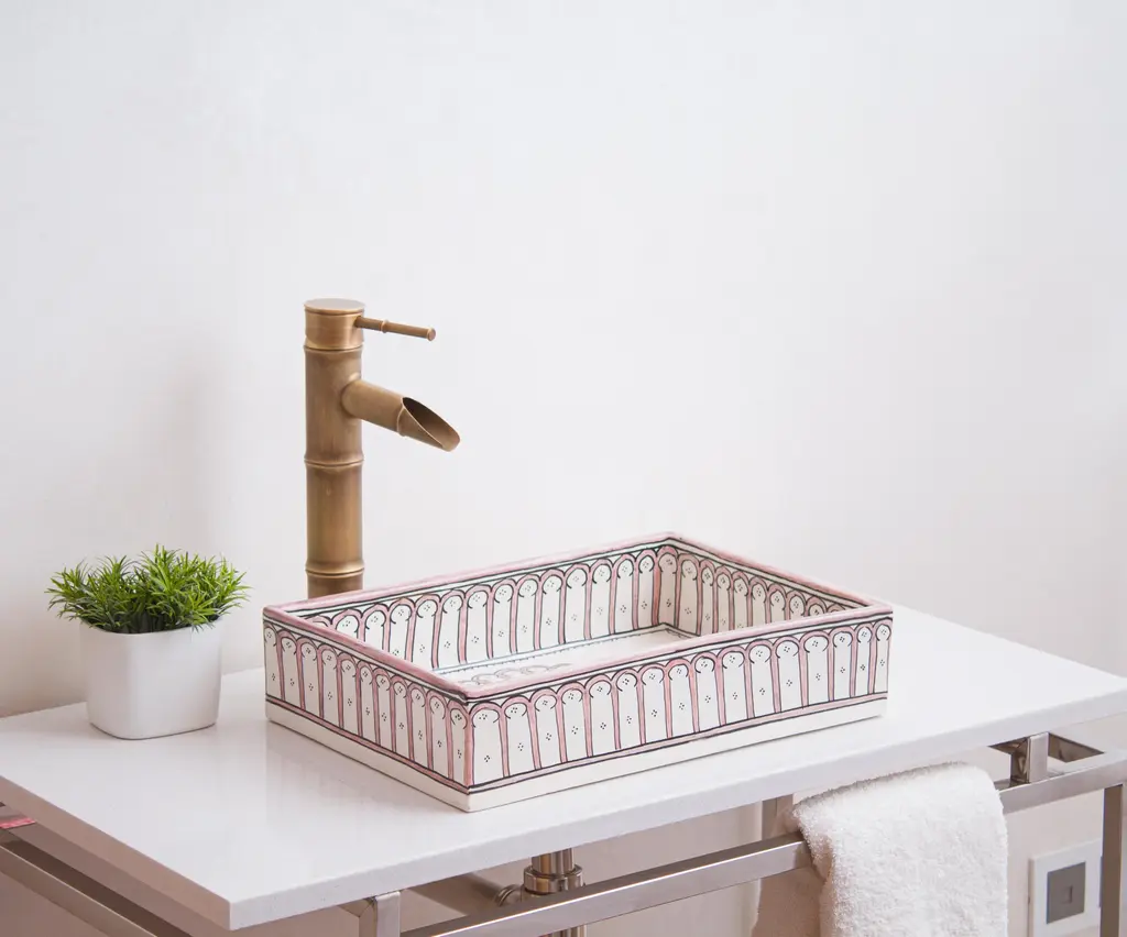 Custom Made Mini Rectangular Pink Bathroom Sink, Handmade Washbasin, Hand-Painted Vessel Sink