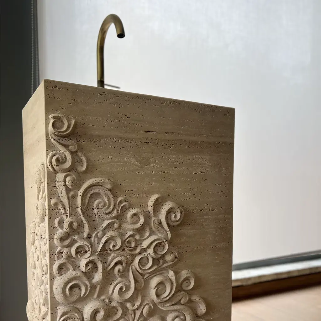 Dame is a captivating fusion of classic and contemporary design for the bathroom. Crafted by renowned French designer Christophe Pillet, this collection showcases marble sinks and free-standings blending smooth surfaces with intricate hand-sculpted details. Circular counter sinks and geometric free-standings exude sophistication. Ideal for upscale residences and hospitality projects, please contact the Concierge for further information and options.
