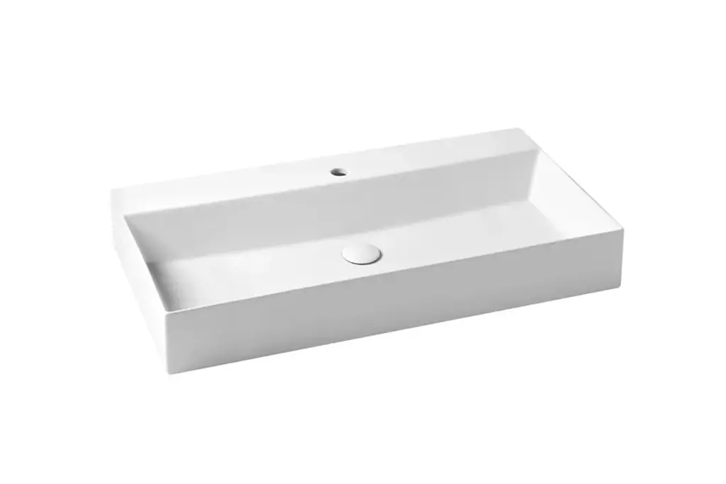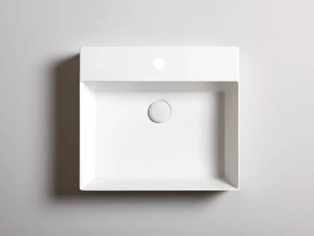Elegance Squared is a single rectangular countertop / wall-hung washbasin available in various sizes and colors.The drain can be purchased separately.The collection Elegance, available in the Circle, Soft, Zip and Squared versions, combines technological innovation and formal research. The thicknesses have been reduced to a minimum, just 3 mm, and lend a linear appearance to the washbasins, showcasing the ceramic material. The company expanded its offer by introducing the new palettes of the Colors 1250°, Luxury and Le Malteceramiche® lines, which enhance the slim lines of the washbasins.